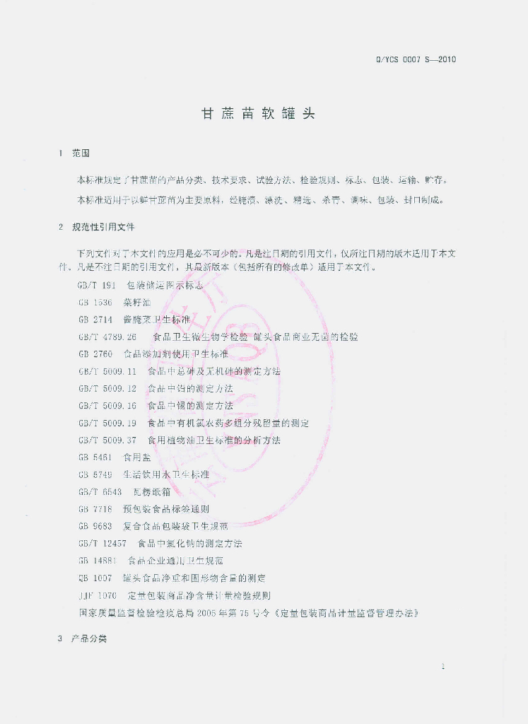 Q/YCS 0007S-2010 甘蔗苗软罐头