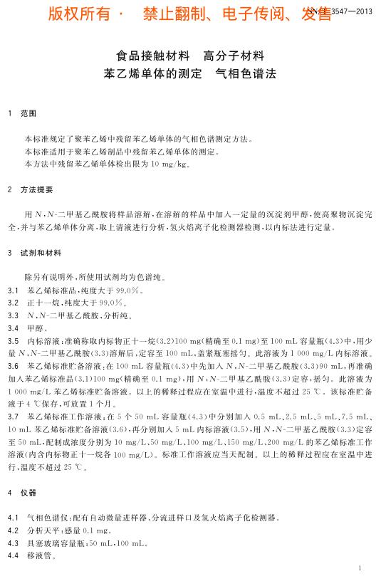SN/T 3547-2013 食品接触材料 高分子材料 苯乙烯单体的测定 气相色谱法