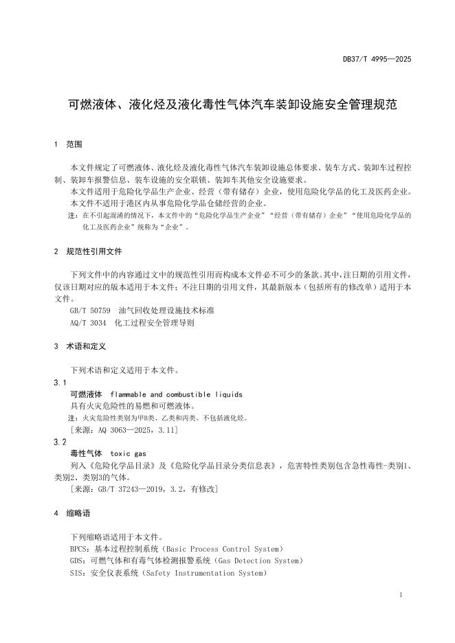 DB37/T 4995-2025 可燃液体、液化烃及液化毒性气体汽车装卸设施安全管理规范