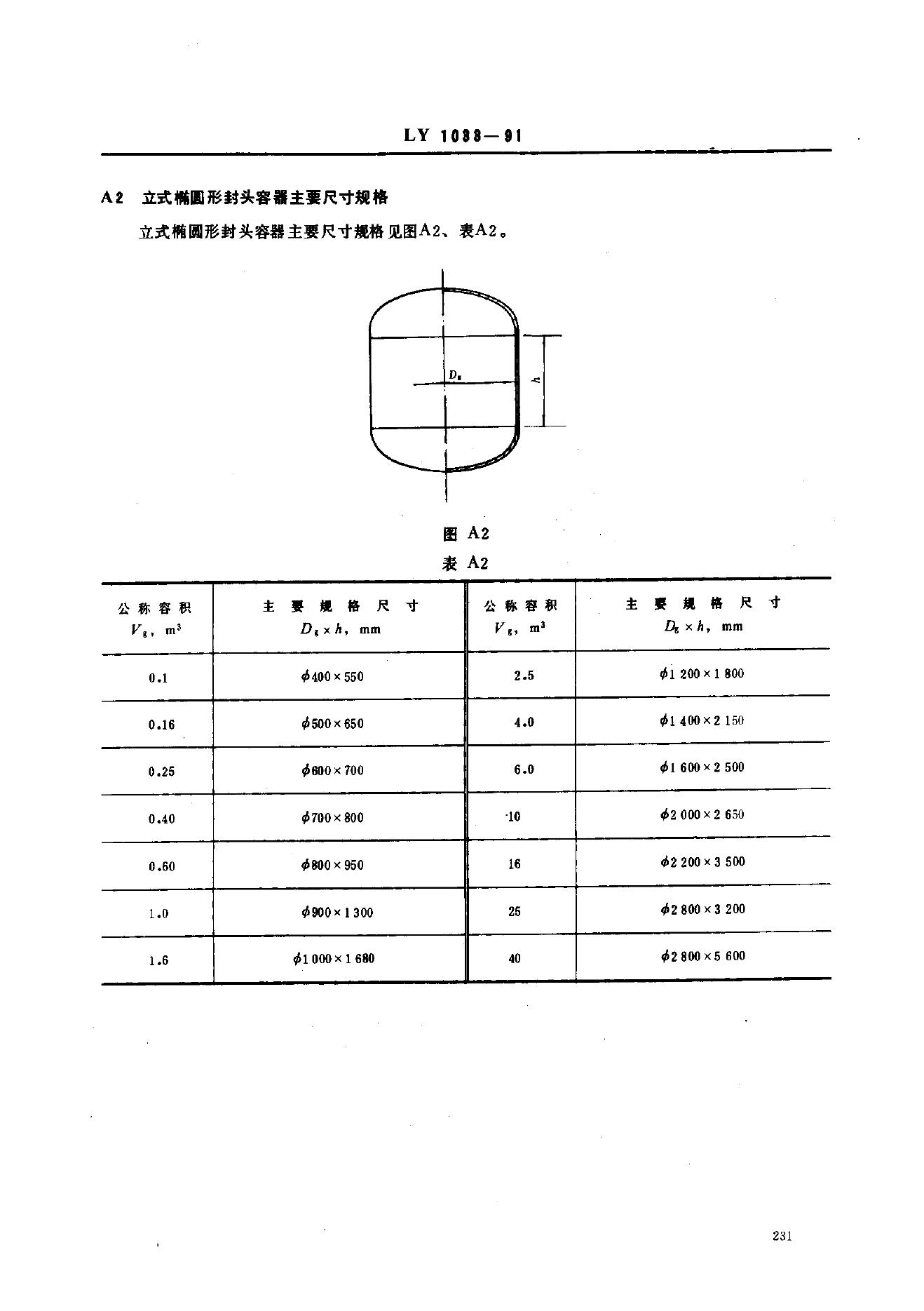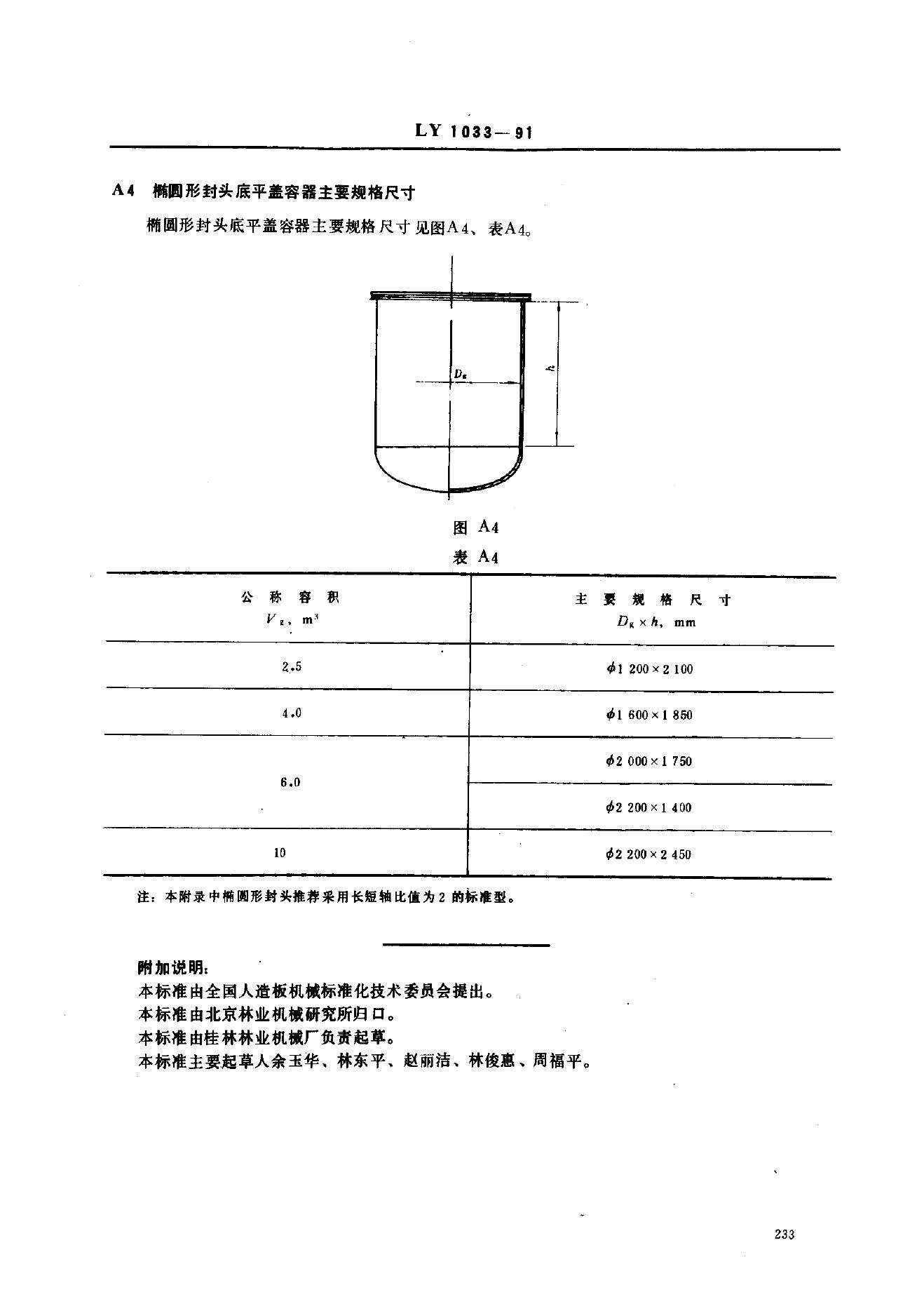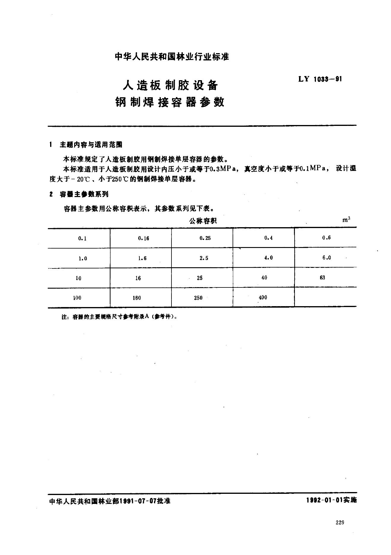 LY 1033-1991 人造板胶设备钢制焊接容器参数