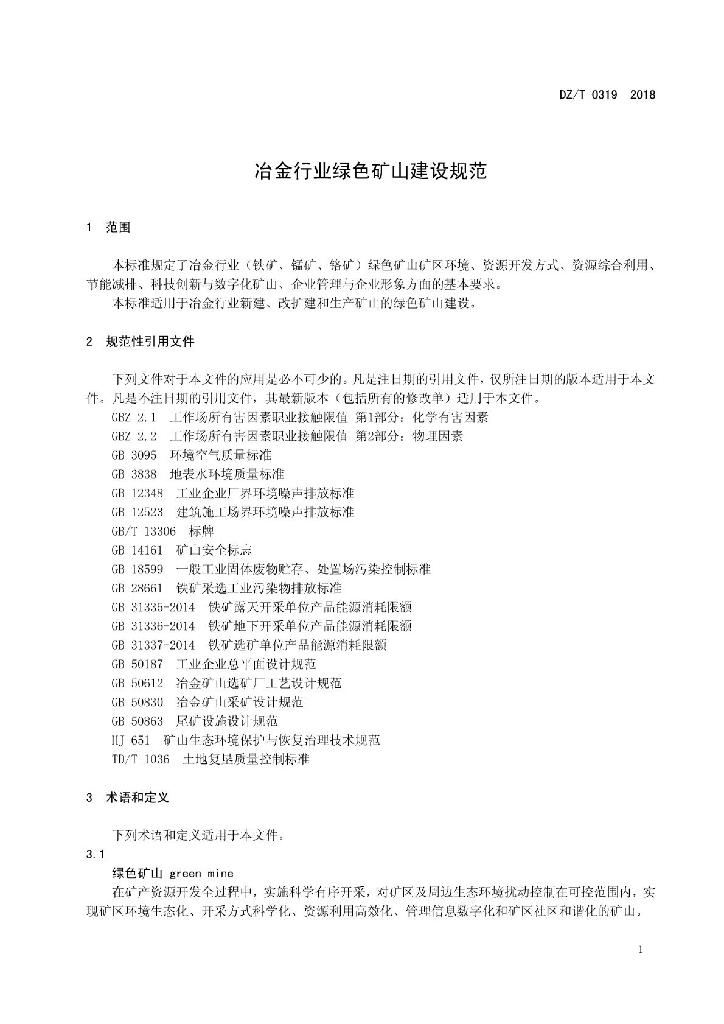 DZ/T 0319-2018 冶金行业绿色矿山建设规范