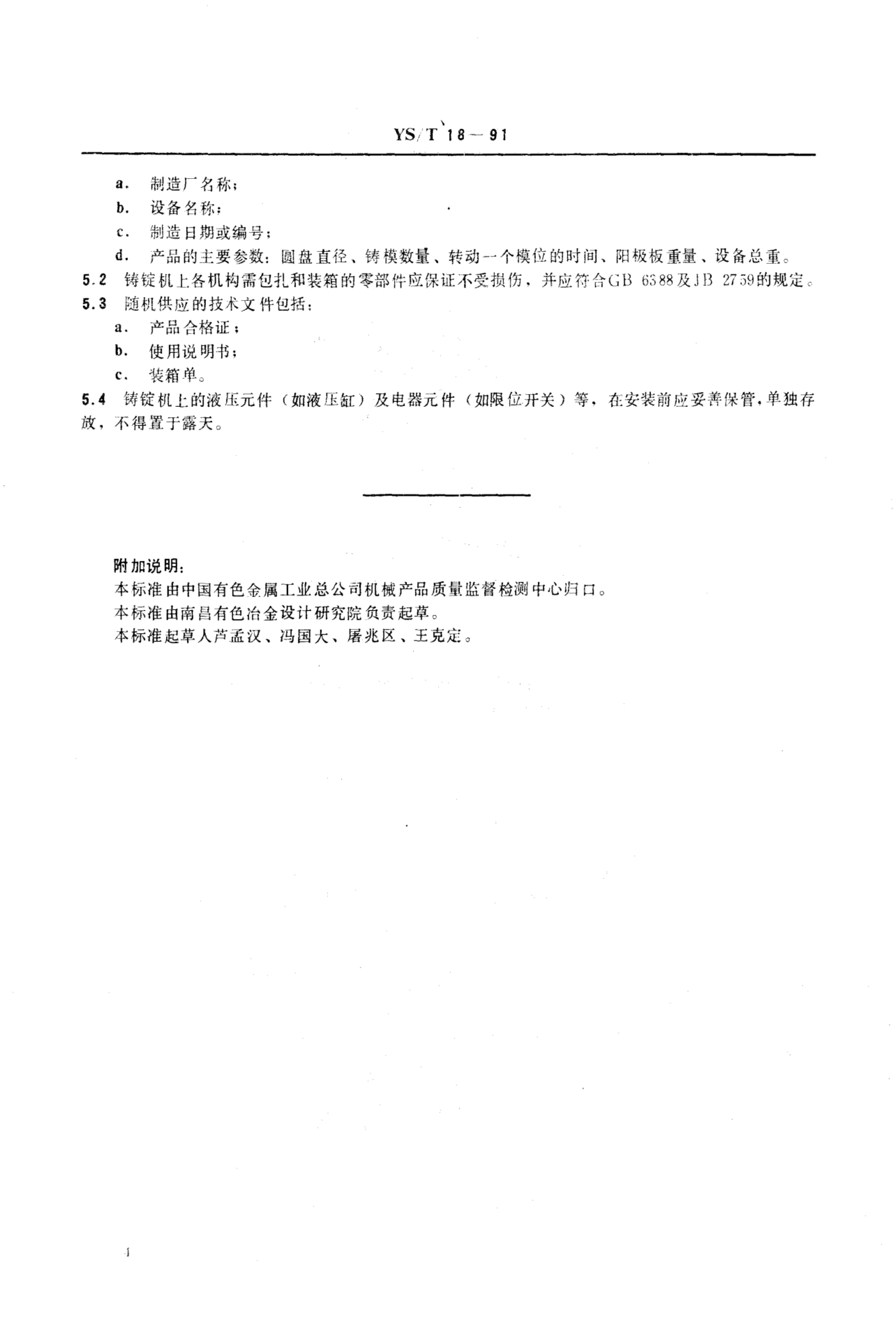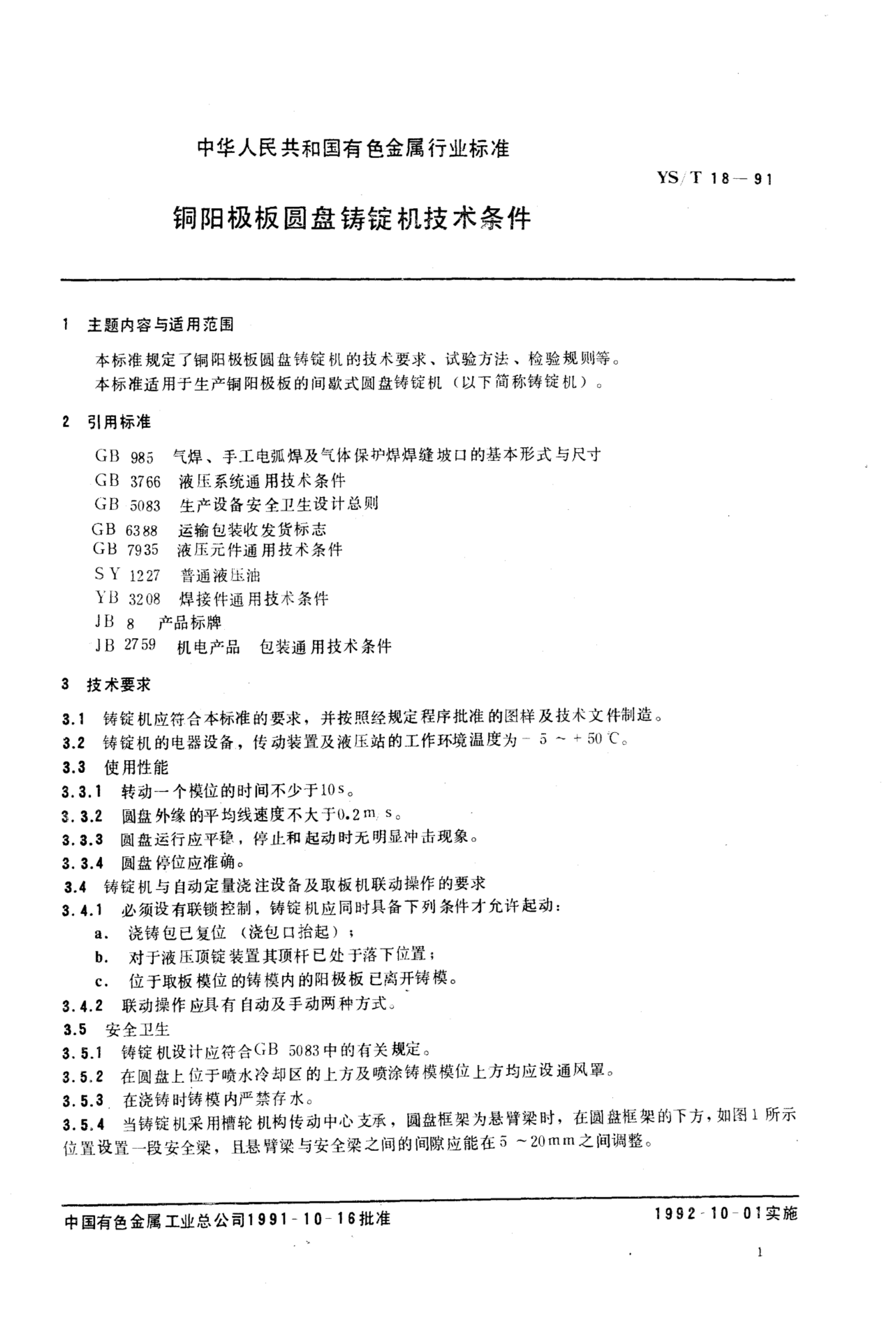 YS/T 18-1991 铜阳极板圆盘铸锭机技术条件