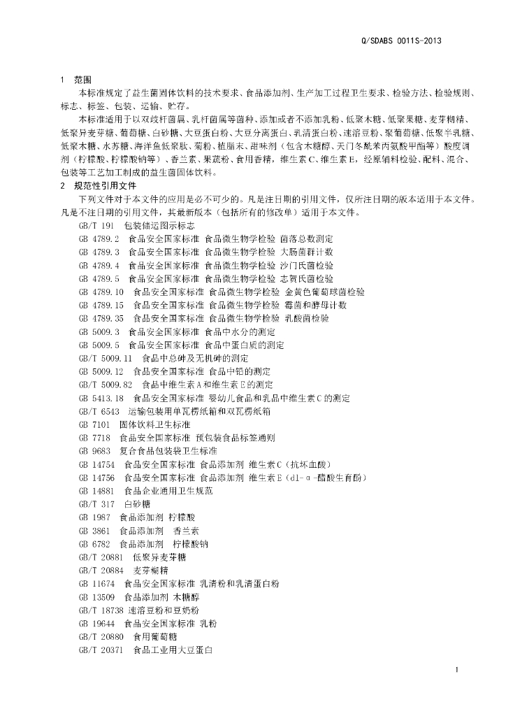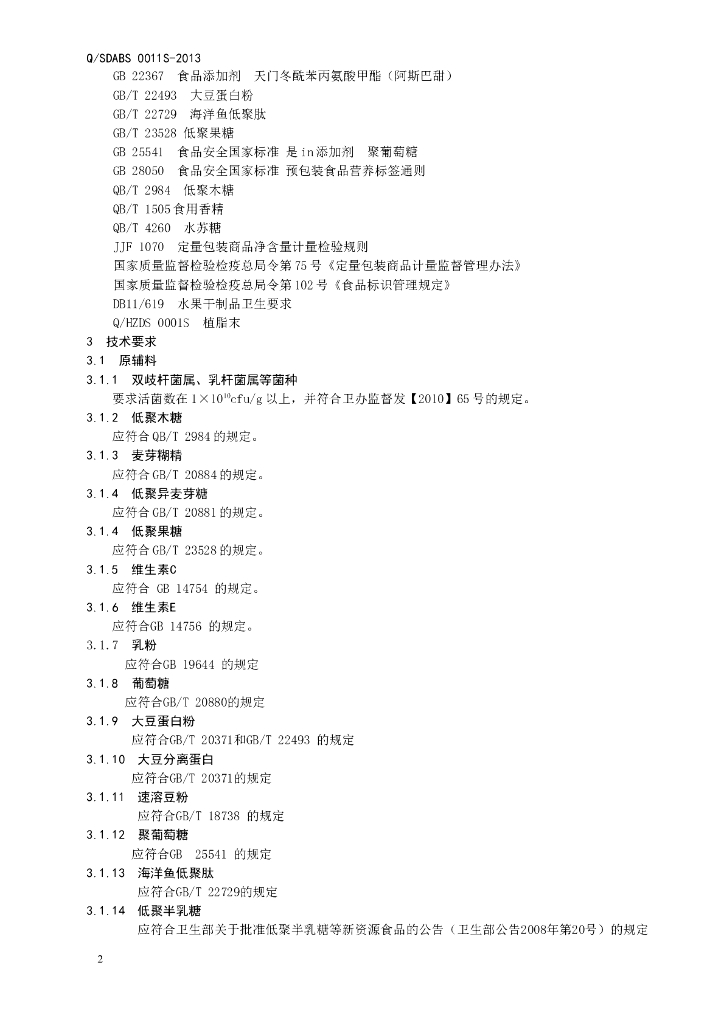 Q/SDABS 0011S-2015 山东奥博森医药科技有限公司 益生菌固体饮料