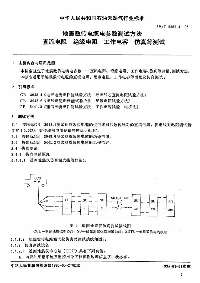 SY/T 5585.4-1993 地震数传电缆电参数测试方法特性阻抗和传播时间测试 直流电阻、绝缘电阻、工作电容、仿真等测试