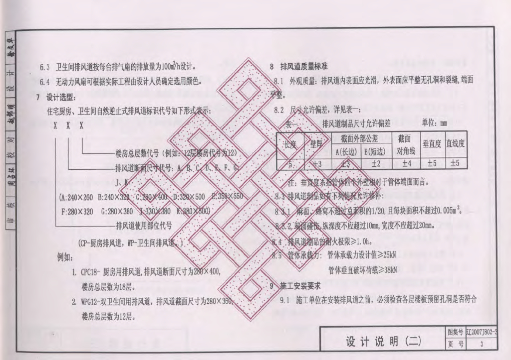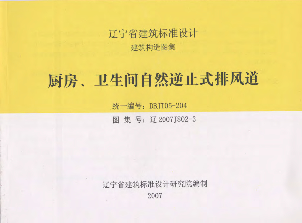 辽2007J802-3 厨房、卫生间自然逆止式排风道图集