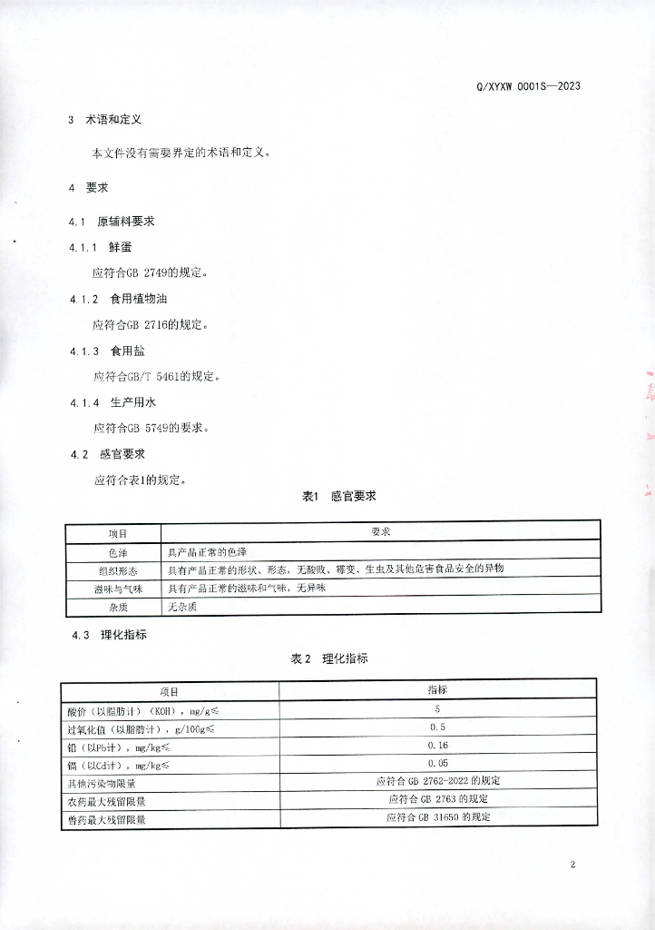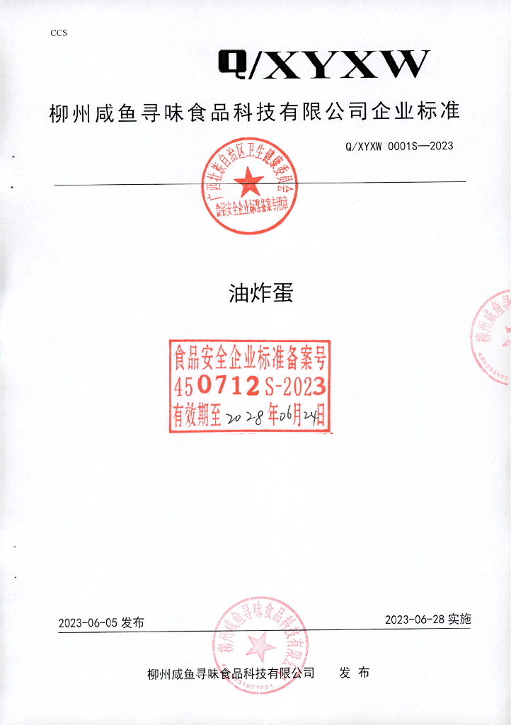 Q/XYXW 0001S-2023 油炸蛋