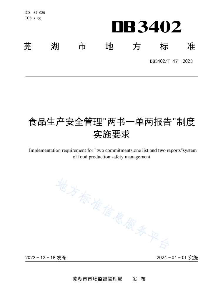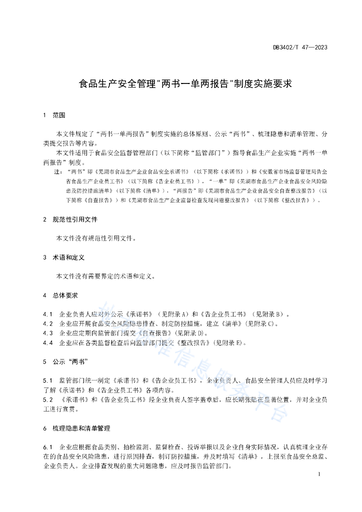 DB3402/T47-2023 食品生产安全管理"两书一单两报告"制度实施要求