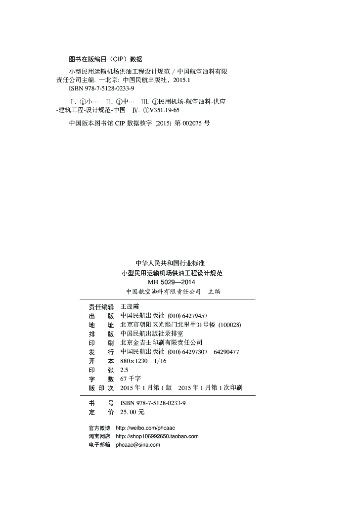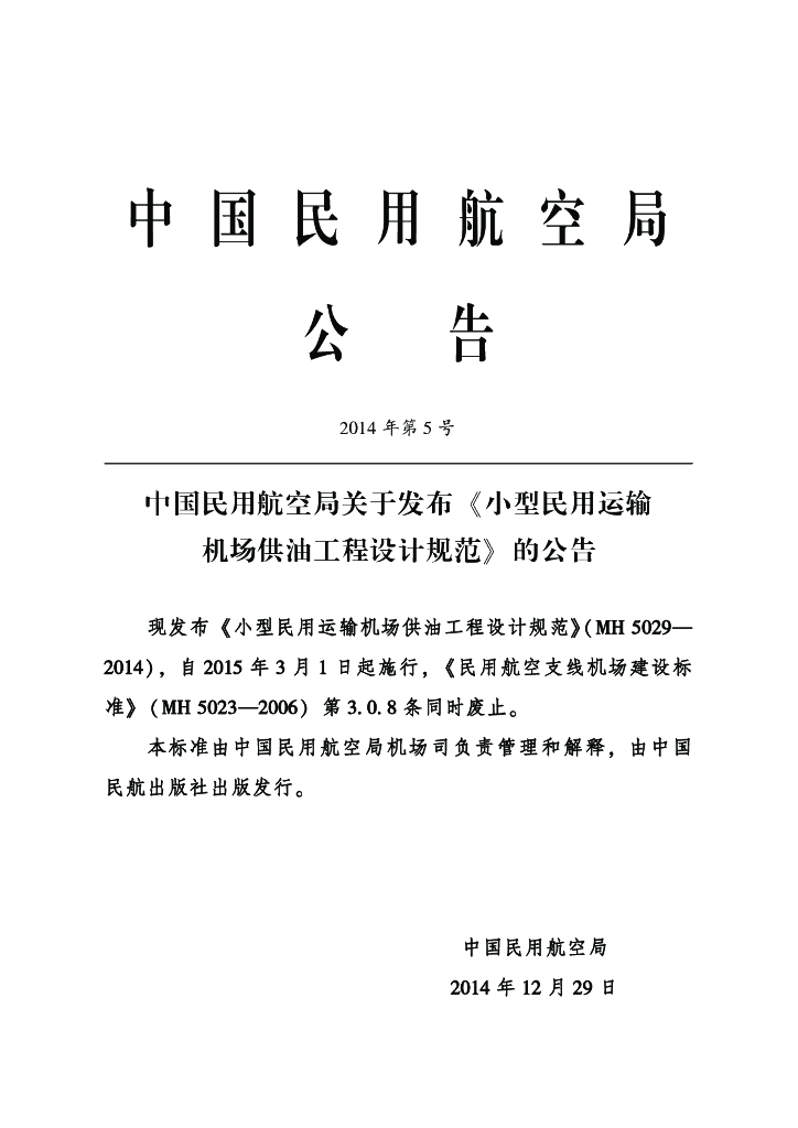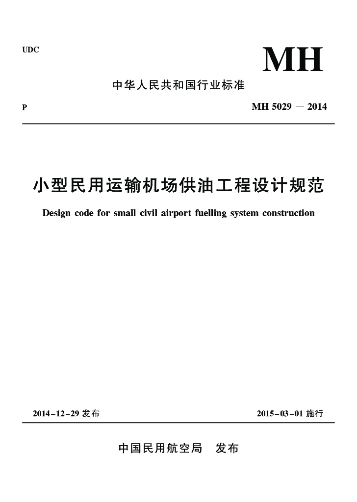 MH 5029-2014 小型民用运输机场供油工程设计规范