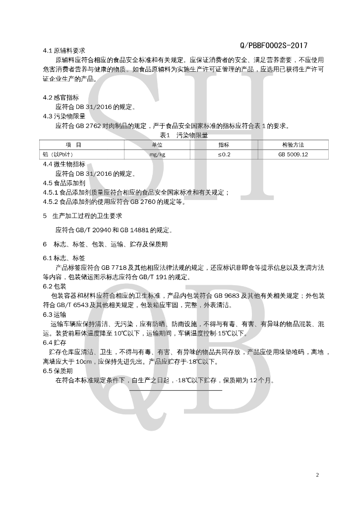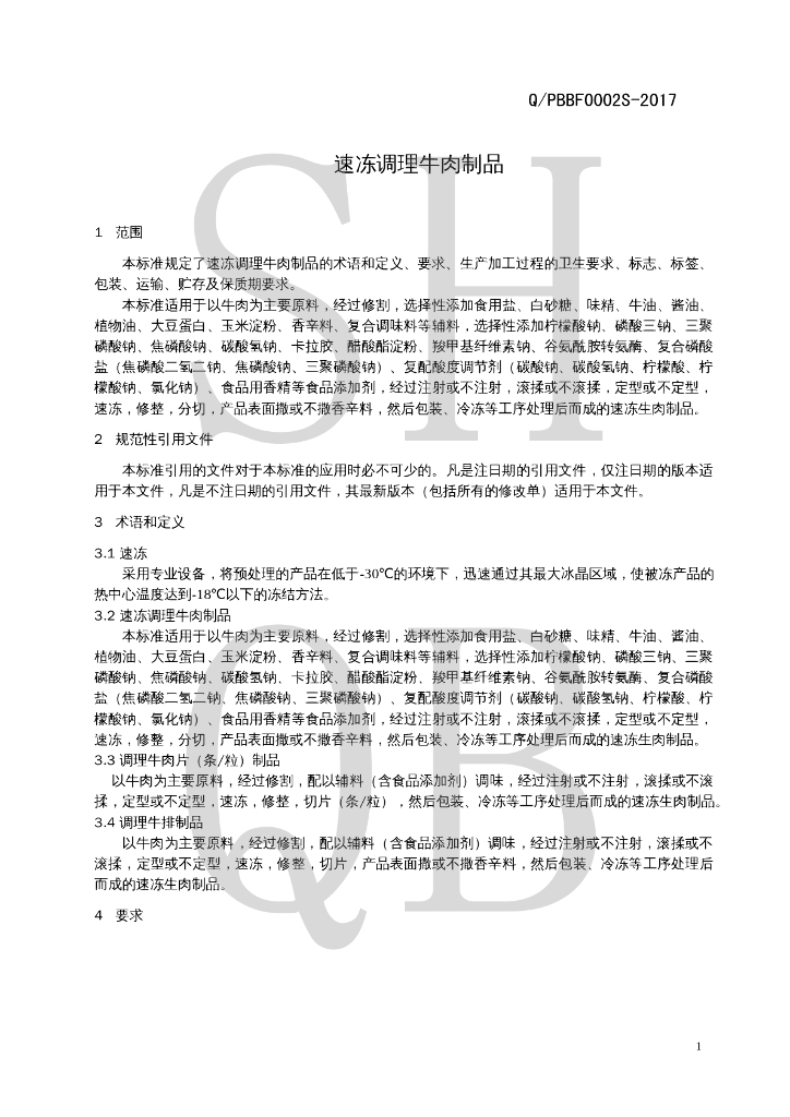 Q/PBBF 0002S-2017 速冻调理牛肉制品