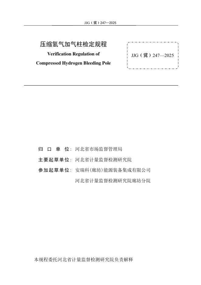 JJG(冀)247-2025 压缩氢气加气柱检定规程