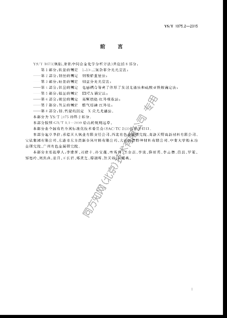 承德天大钒业有限责任公司、西北有色金属研究院、商洛天野高新材料有限公司等