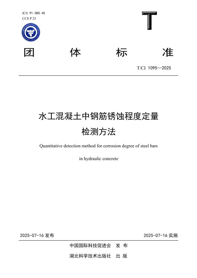 T/CI 1095-2025 水工混凝土中钢筋锈蚀程度定量检测方法