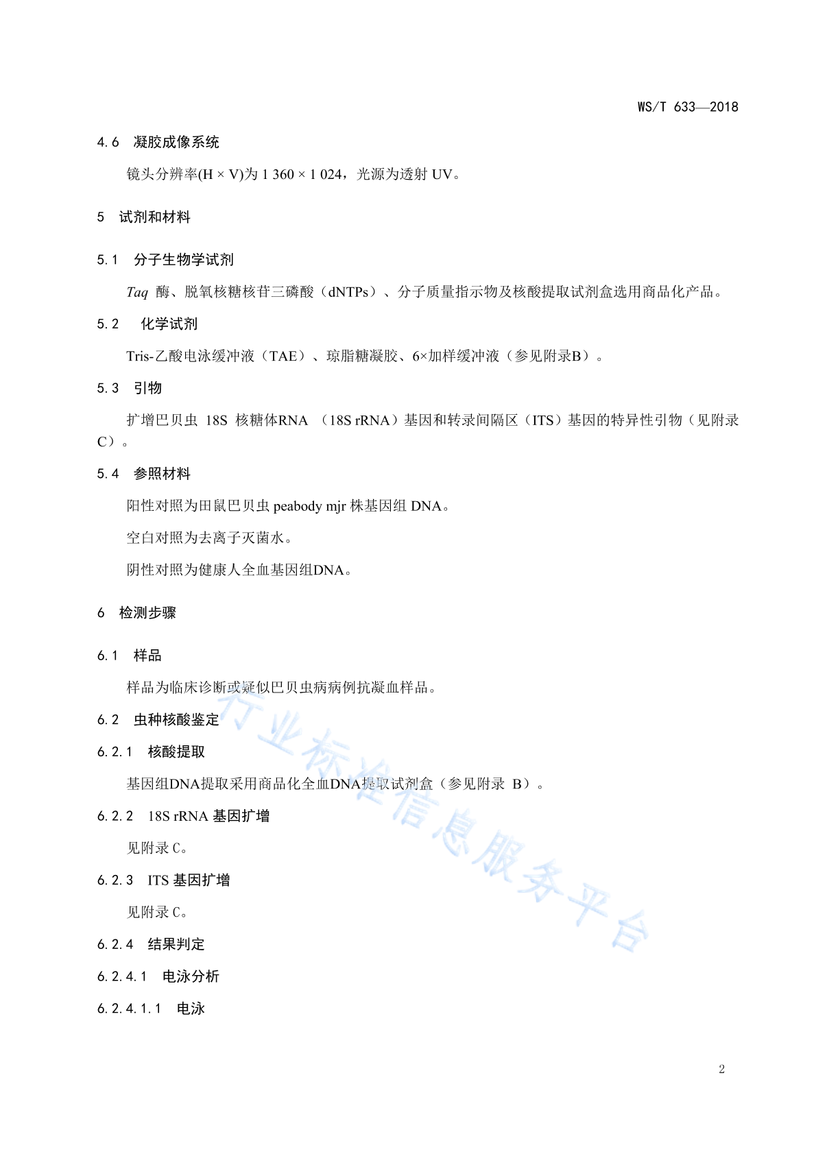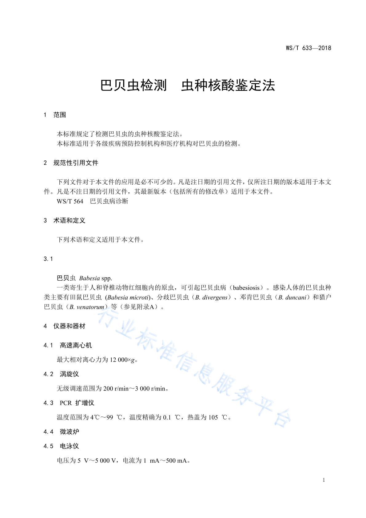 WS/T 633-2018 巴贝虫检测 虫种核酸鉴定法