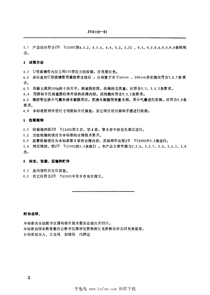 JY 0119-1991 小学物体沉浮实验盒技术条件