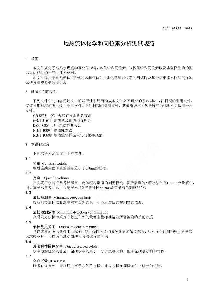 NB/T 11157-2023 地热流体化学和同位素分析测试规范