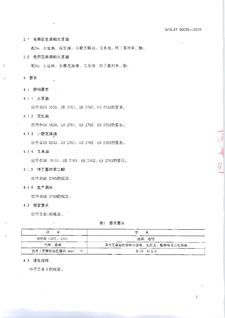 Q/GLAY 0002S-2015 桂林市安煜食品有限公司 食用调和油
