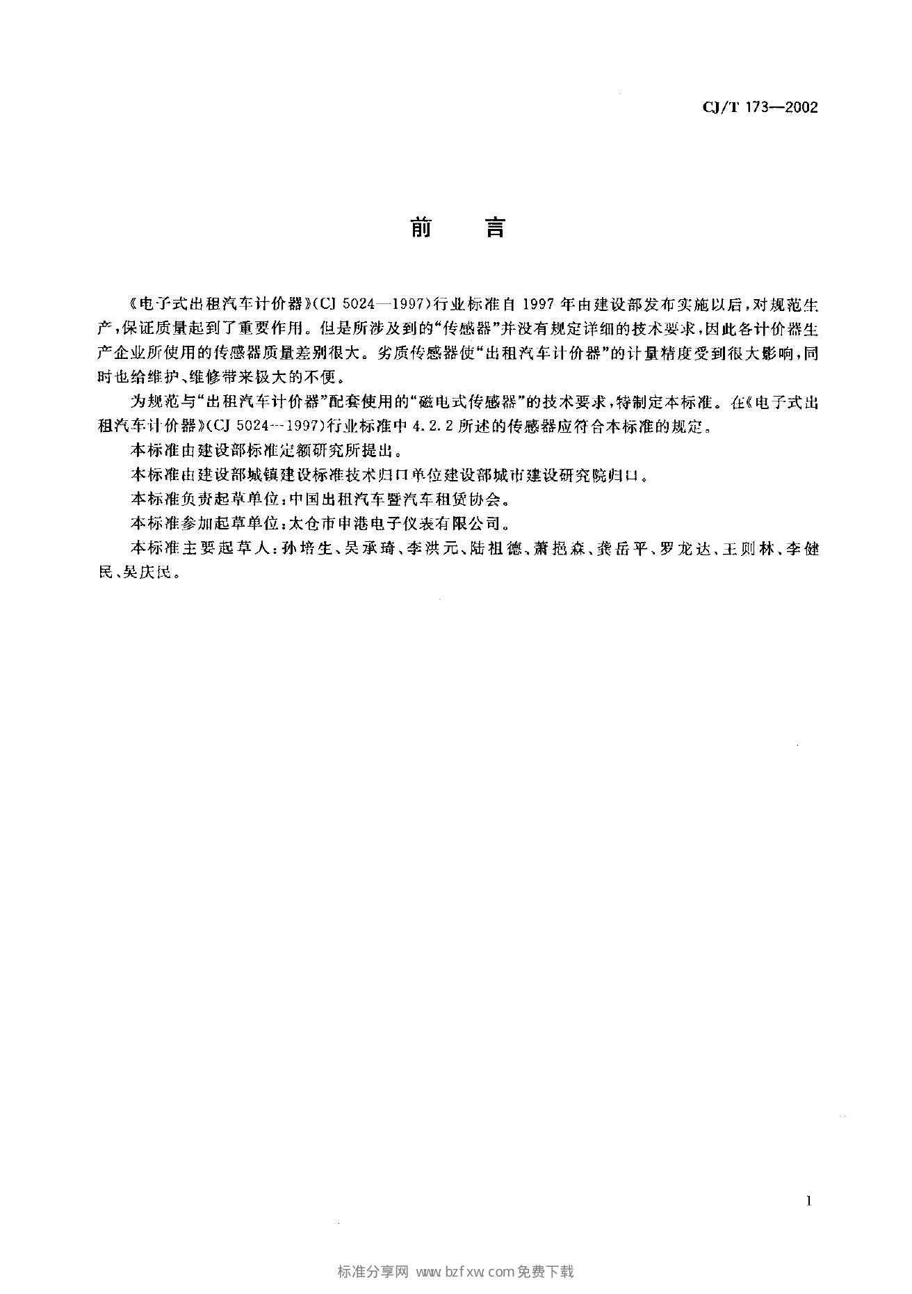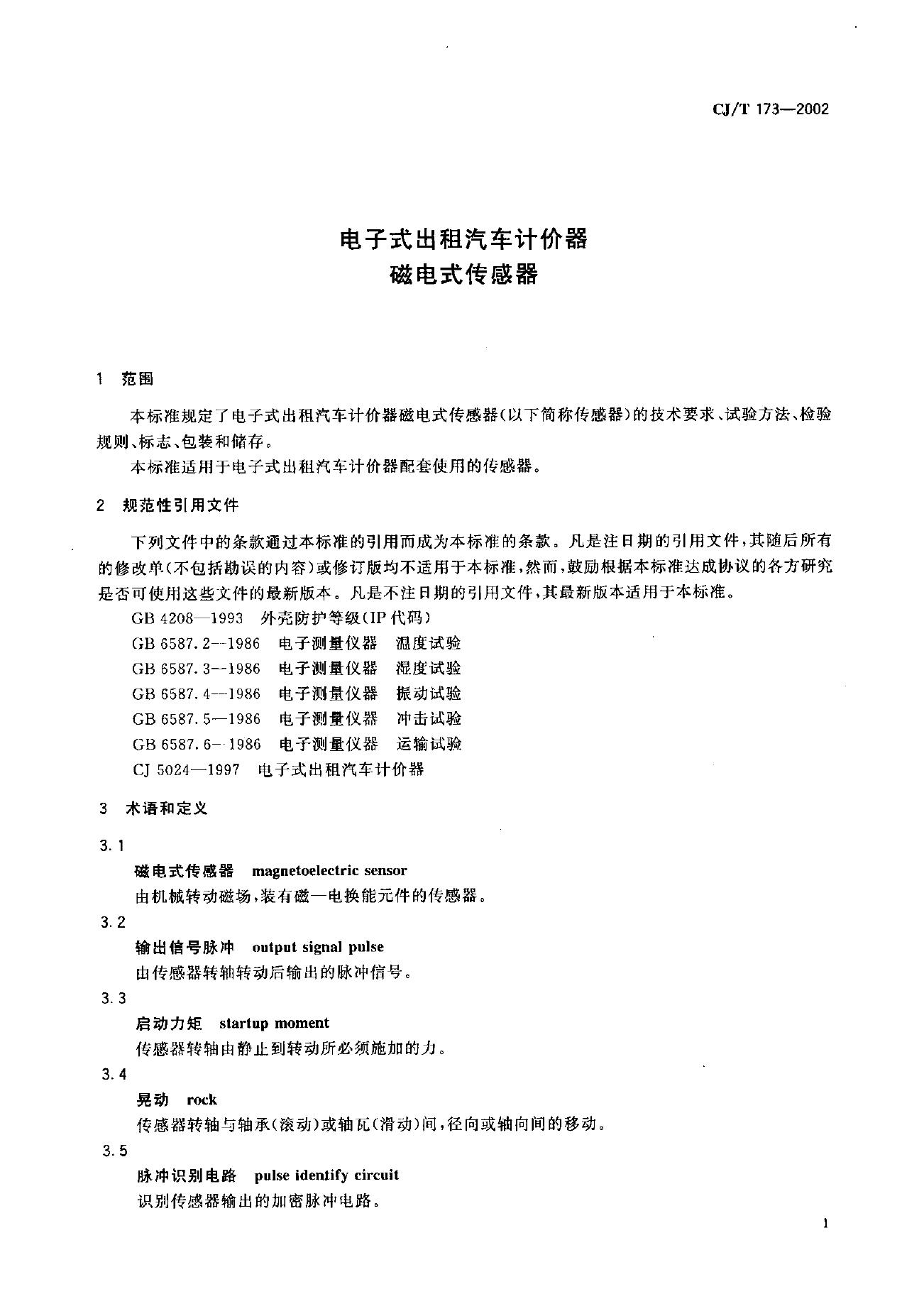 CJ/T 173-2002 电子式出租汽车计价器磁电式传感器