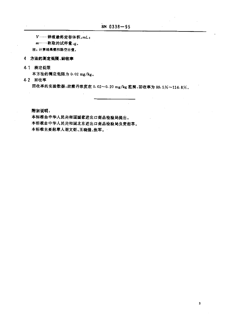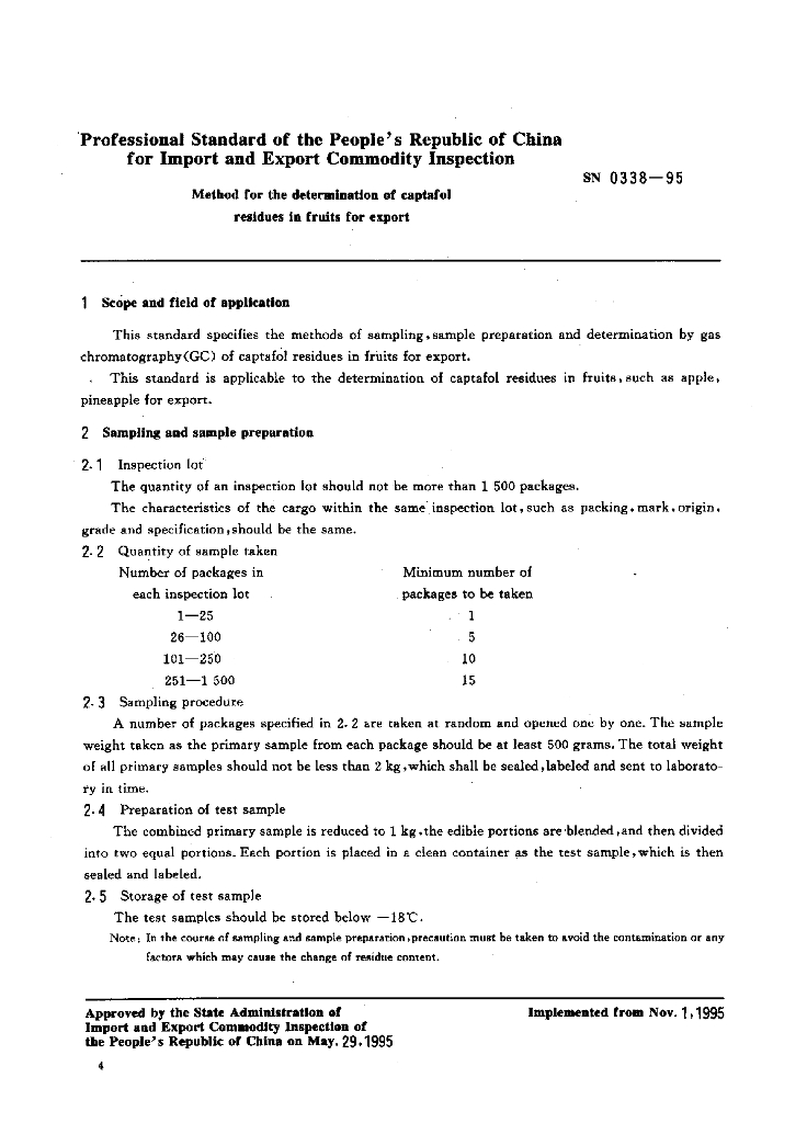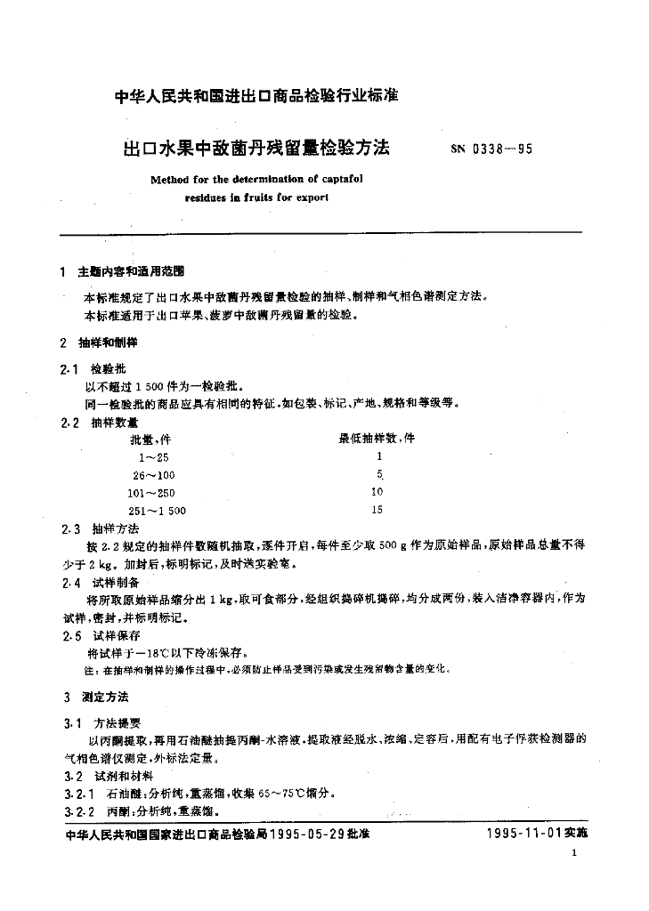 SN 0338-1995 出口水果中敌菌丹残留量检验方法