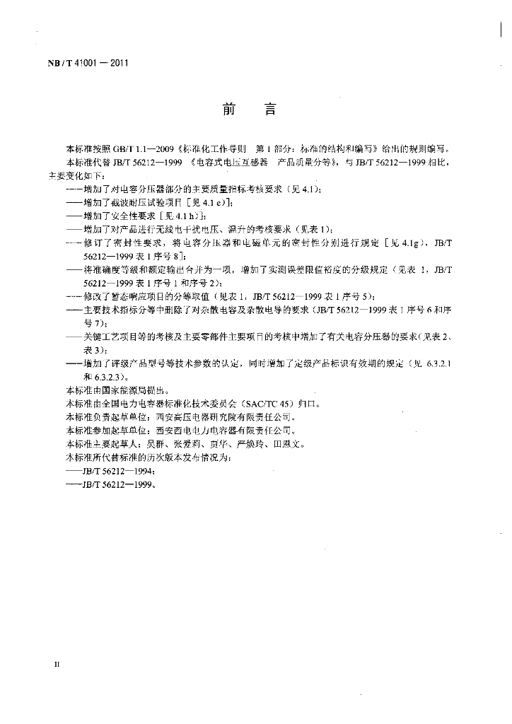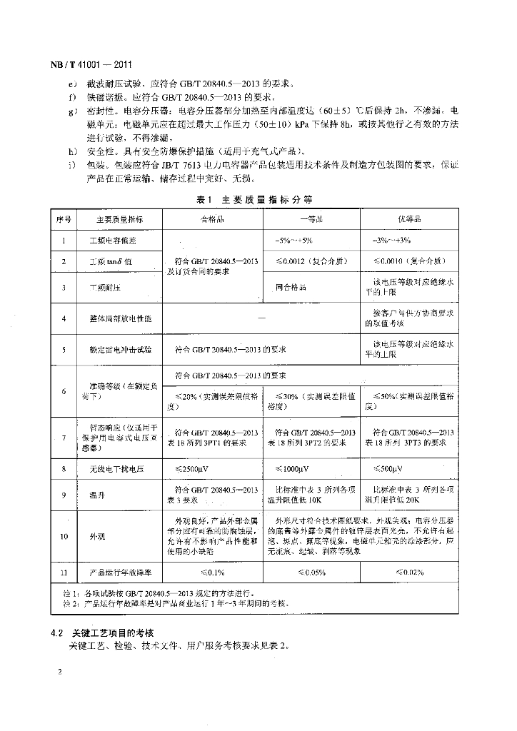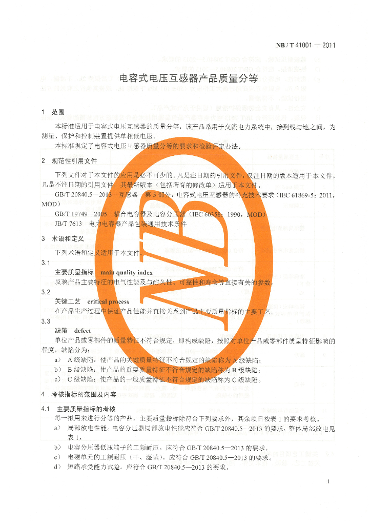 NB/T 41001-2011 电容式电压互感器产品质量分等