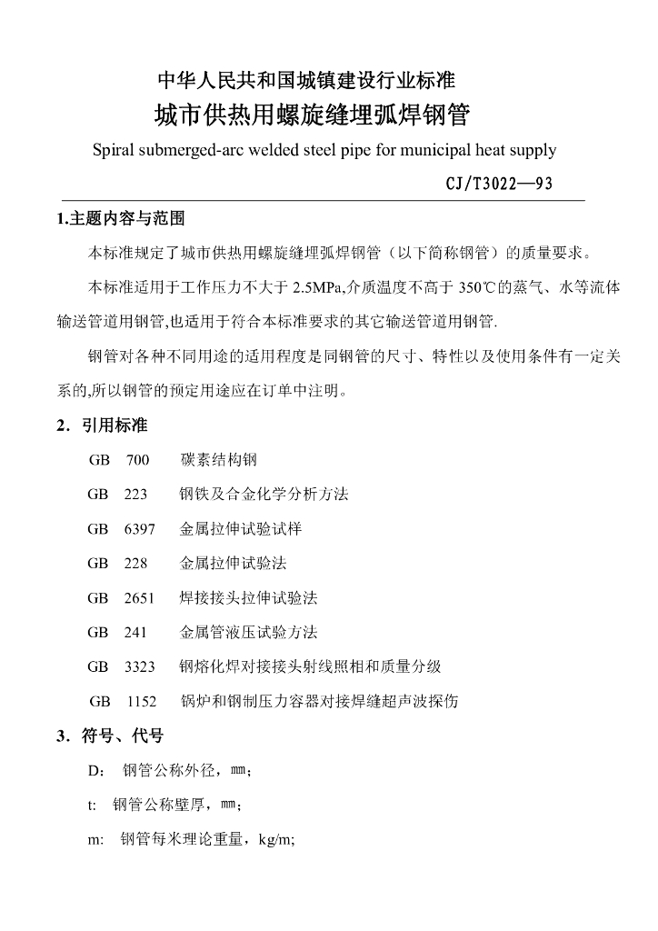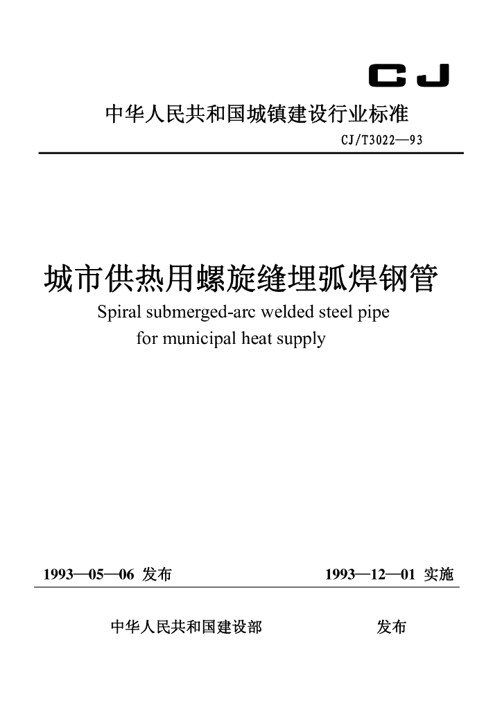 CJ/T 3022-1993 城镇供热用螺旋缝埋弧焊钢管