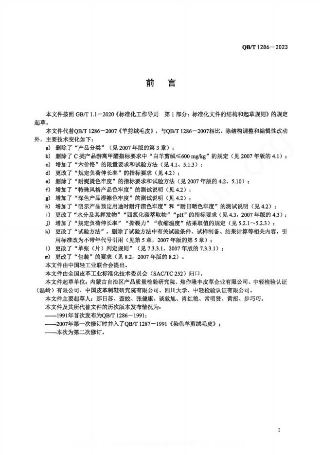 内蒙古自治区产品质量检验研究院、焦作隆丰皮草企业有限公司、中轻检验认证(温岭)有限公司、中国皮革制鞋研究院有限公司、四川大学、中轻检验认证有限公司