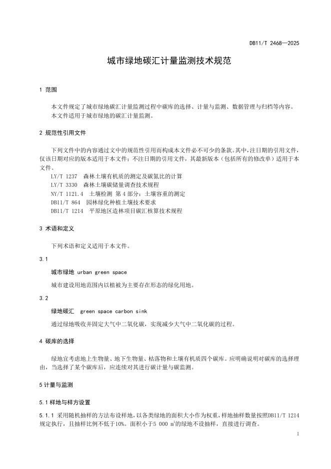 DB11/T 2468-2025 城市绿地碳汇计量监测技术规范