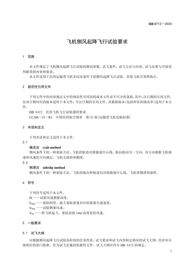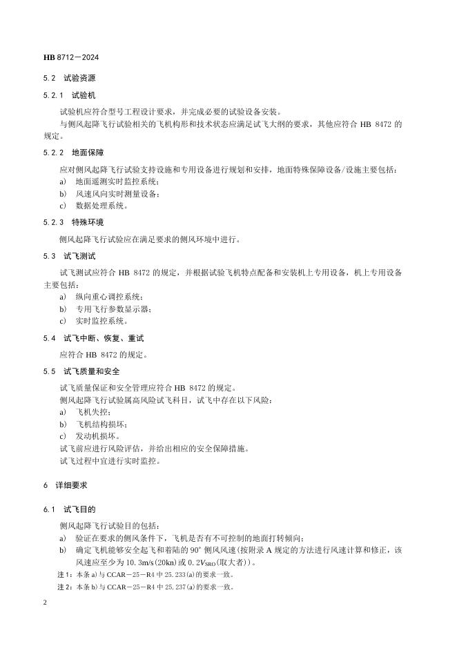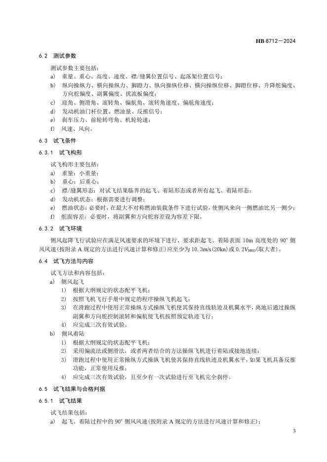 HB 8712-2024 飞机侧风起降飞行试验要求