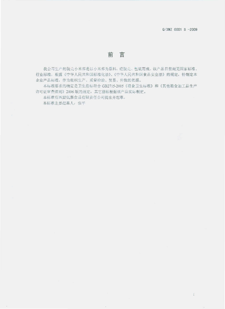 Q/XWZ 0001S-2009 脱壳小米荞