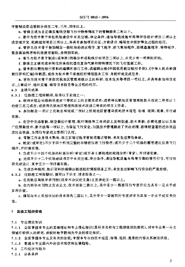 MH/T 0015-1996 民用航空航行专业中、高级技术资格评审条件
