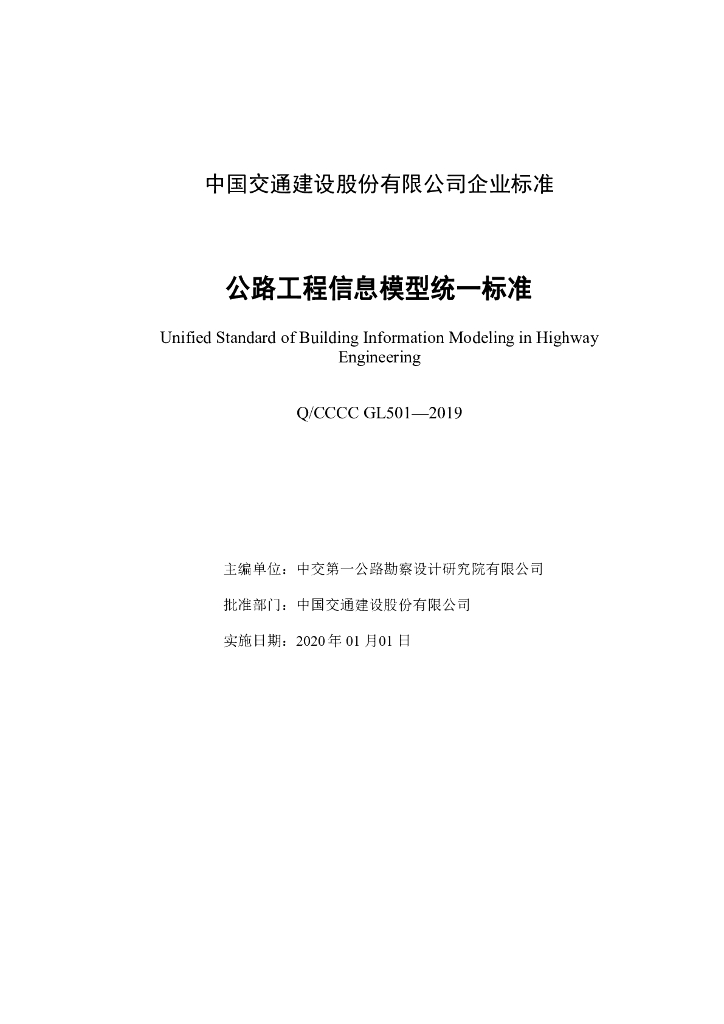 Q/CCCC GL501-2019 公路工程信息模型统一标准