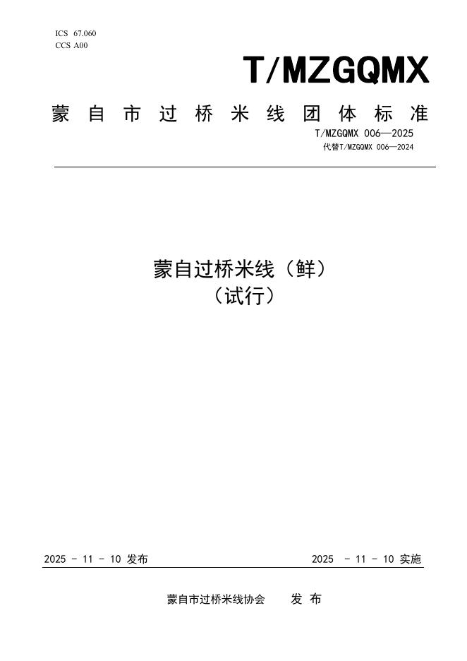 T/MZGQMX 006-2025 蒙自过桥米线(鲜)(试行)
