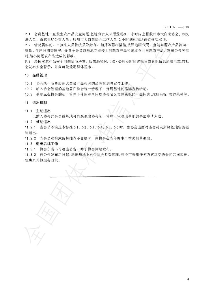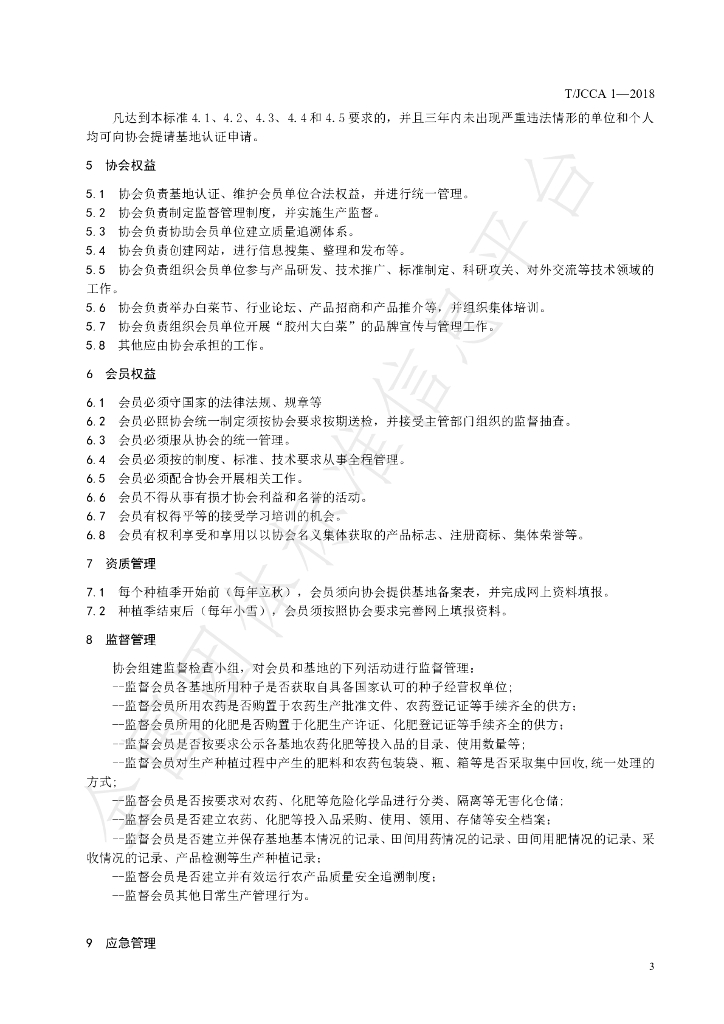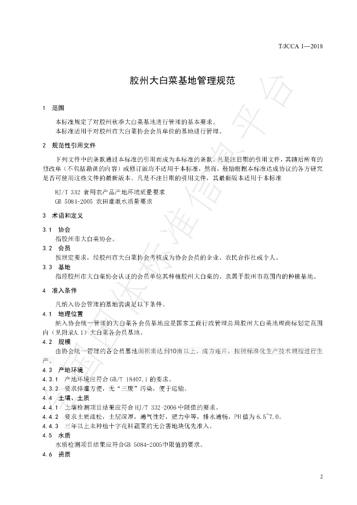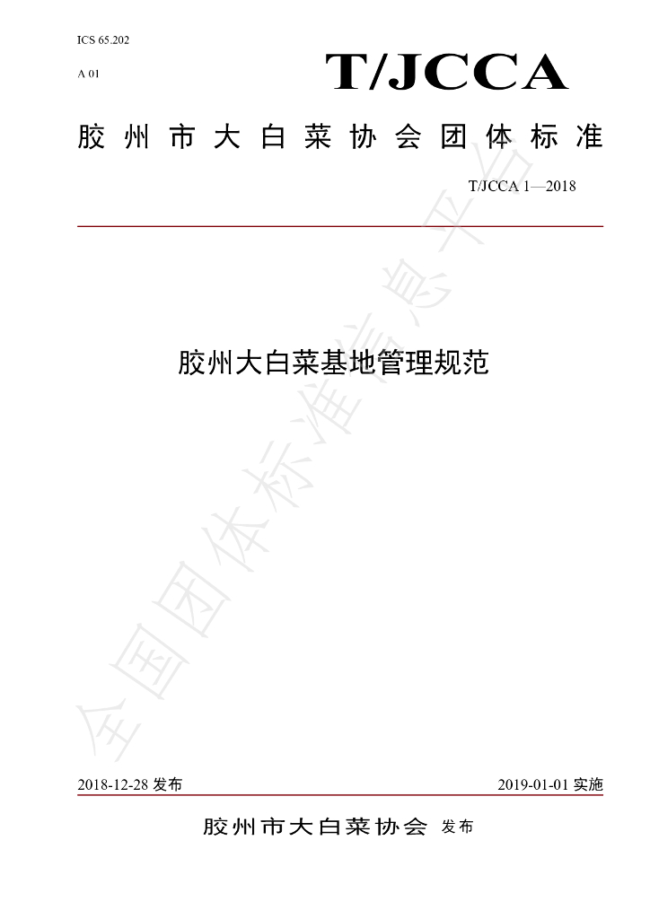 T/JCCA 1-2018 胶州大白菜基地管理规范