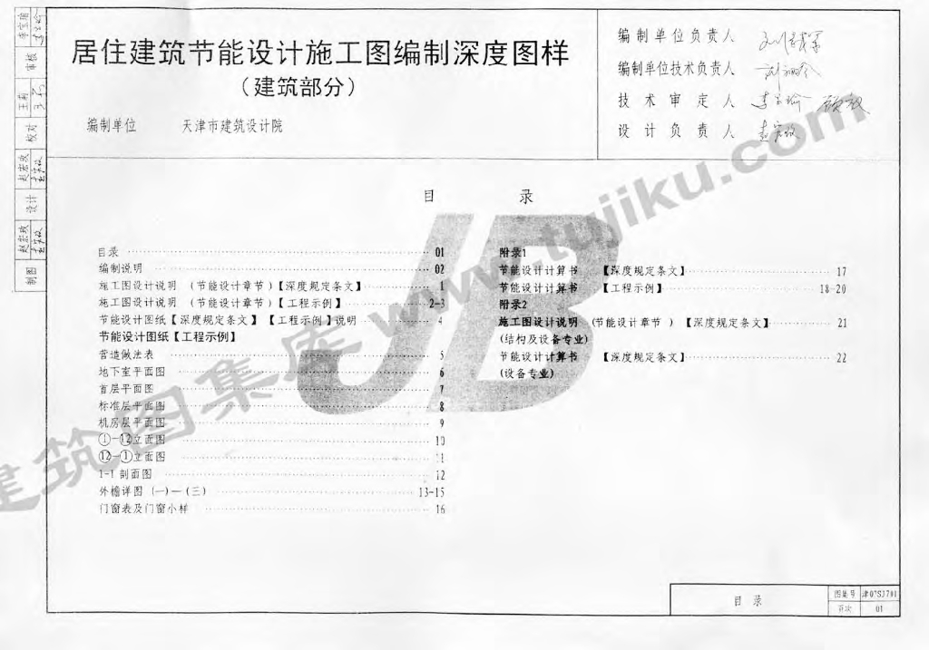 津07SJ701 居住建筑节能设计施工图编制深度图样图集(DBJT29-178-2007)