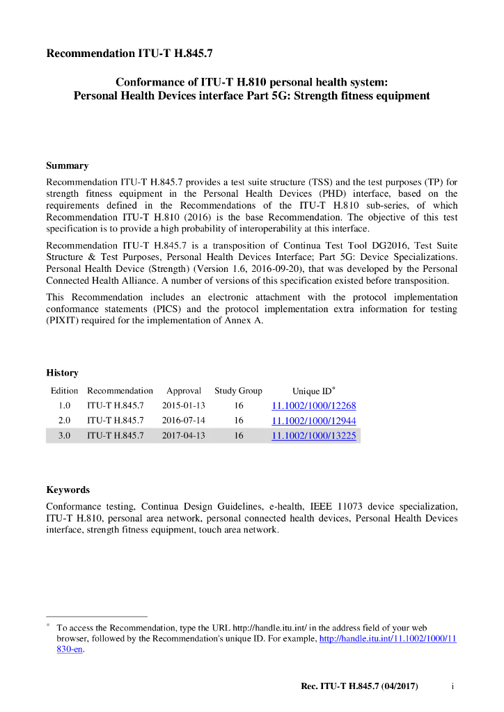 ITU-T H.845.7-2017 ITU-T H.810个人医疗卫生系统一致性 个人卫生设备接口 第5G部分 力量健身设备