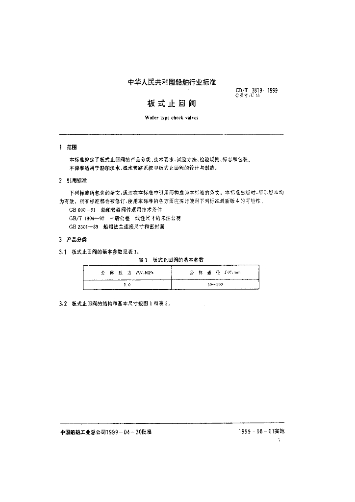 CB/T 3819-1999 板式止回阀