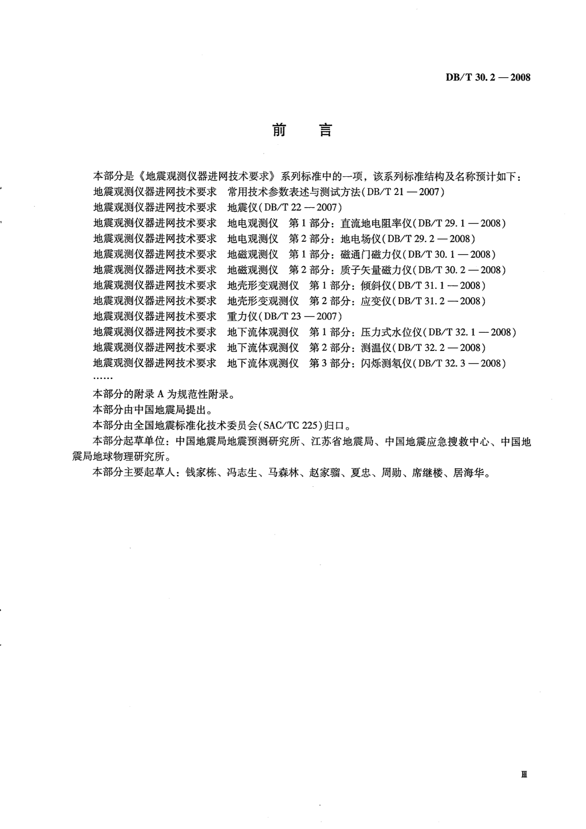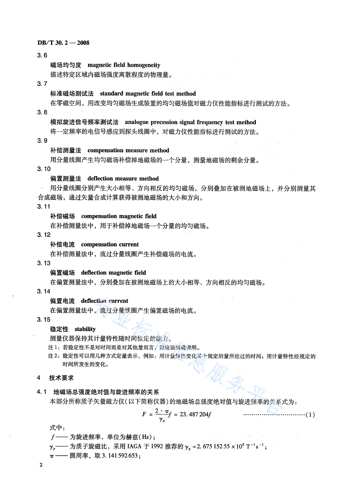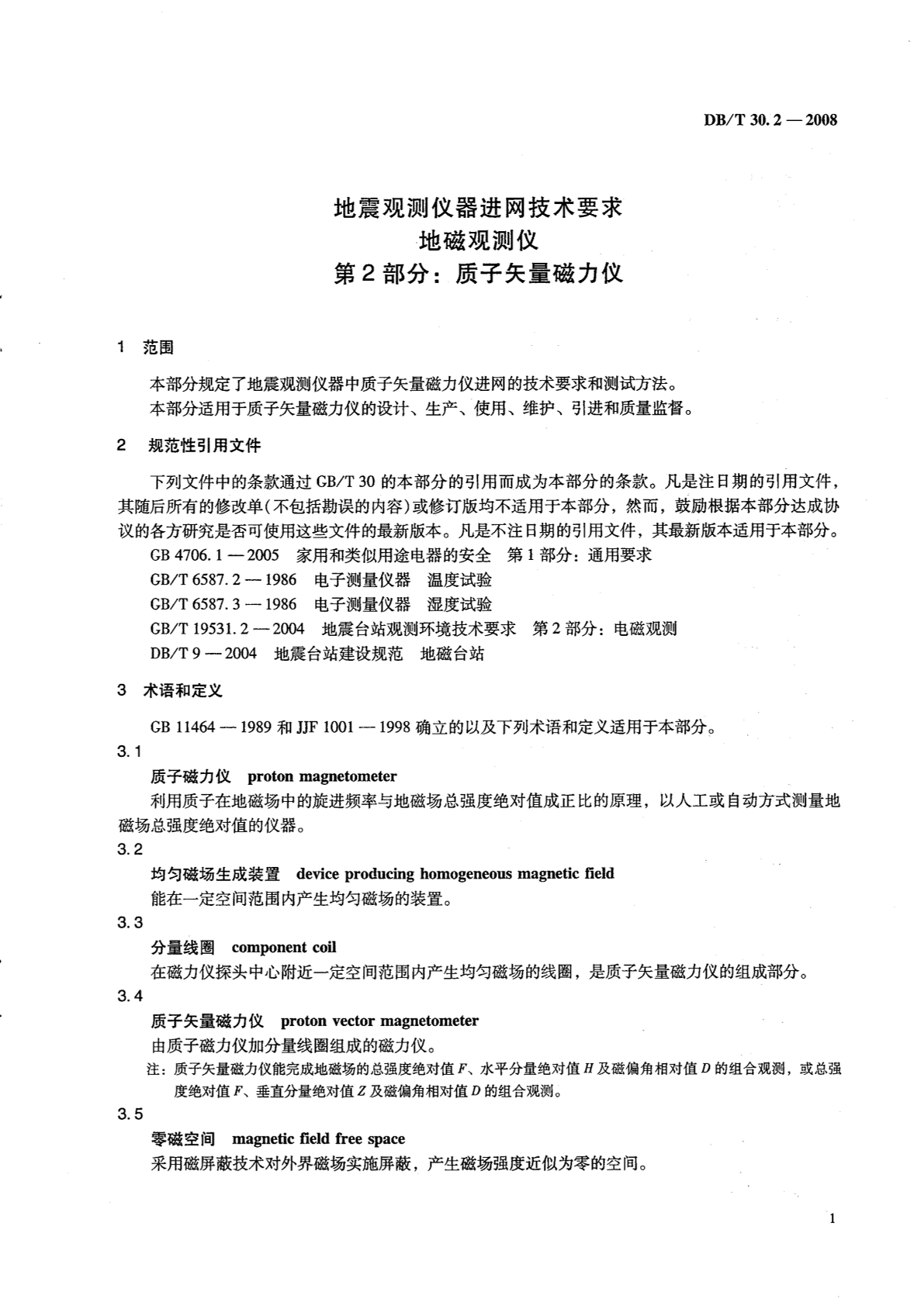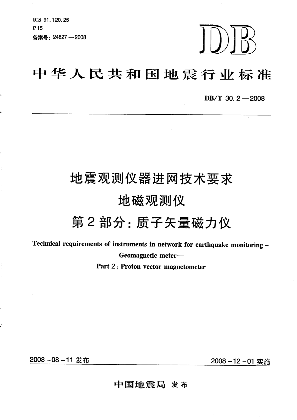 DB/T 30.2-2008 地震观测仪器进网技术要求 地磁观测仪 第2部分:质子矢量磁力仪