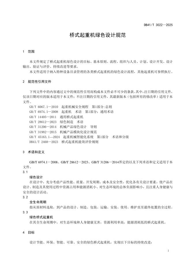 DB41/T 3022-2025 桥式起重机绿色设计规范