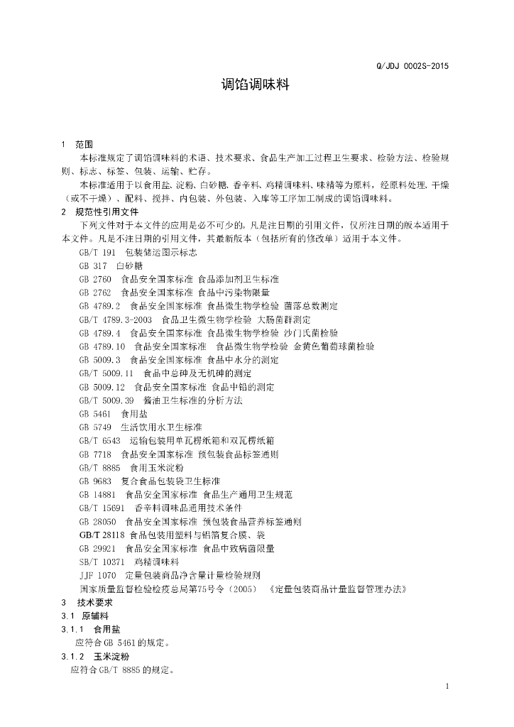 Q/JDJ 0002S-2015 济南吉东家餐饮连锁有限公司 调馅调味料