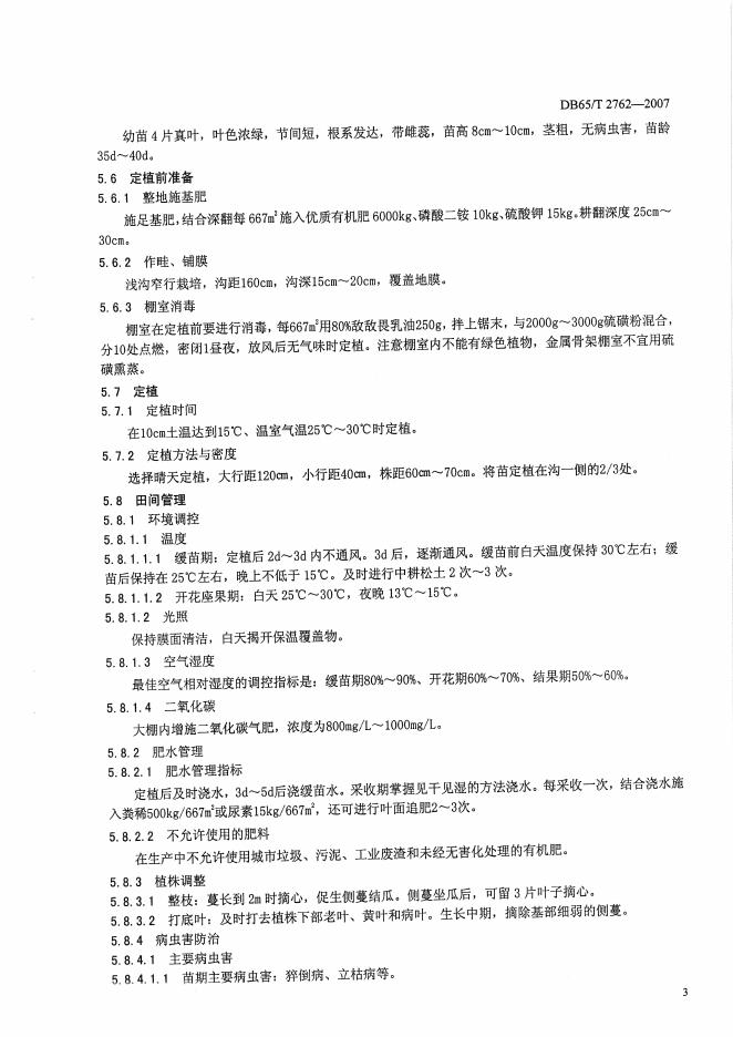 DB65/T 2762-2007 无公害农产品 瓠瓜生产技术规程