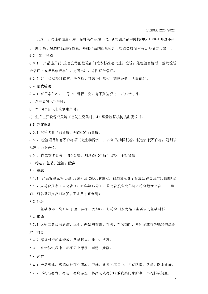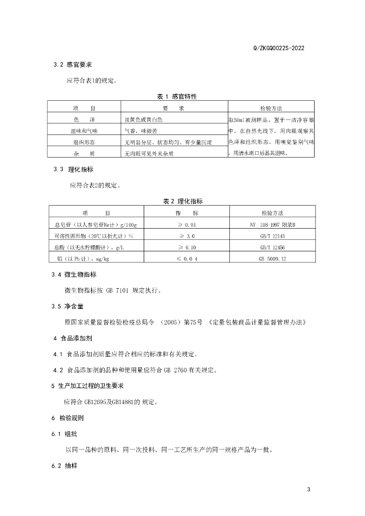 Q/ZKGQ 0022S-2022 人参汁