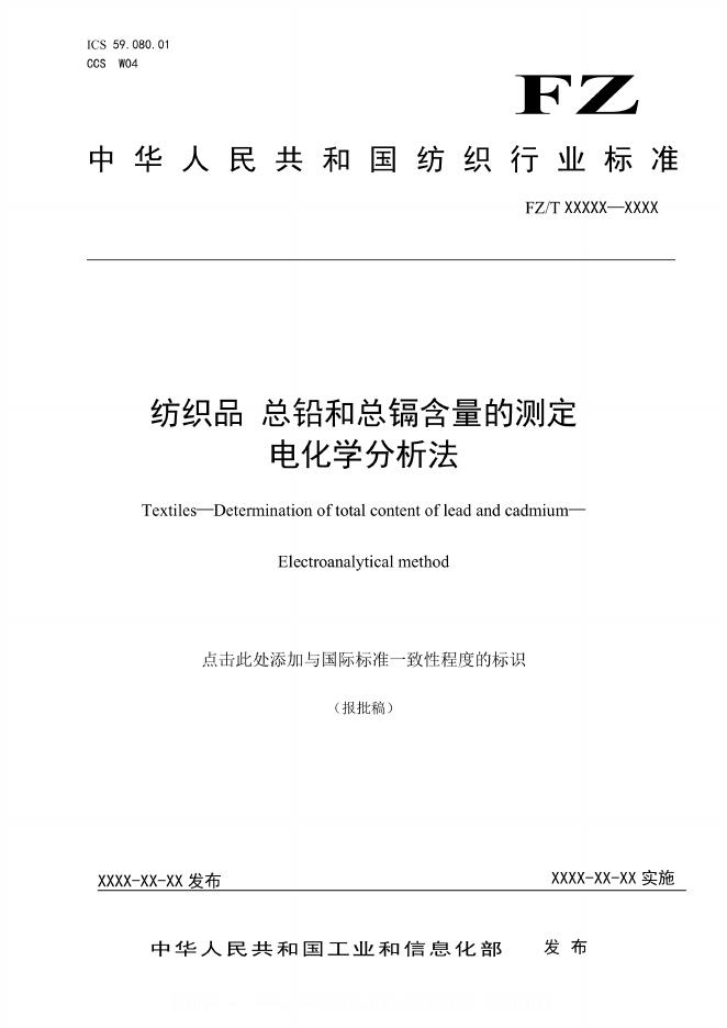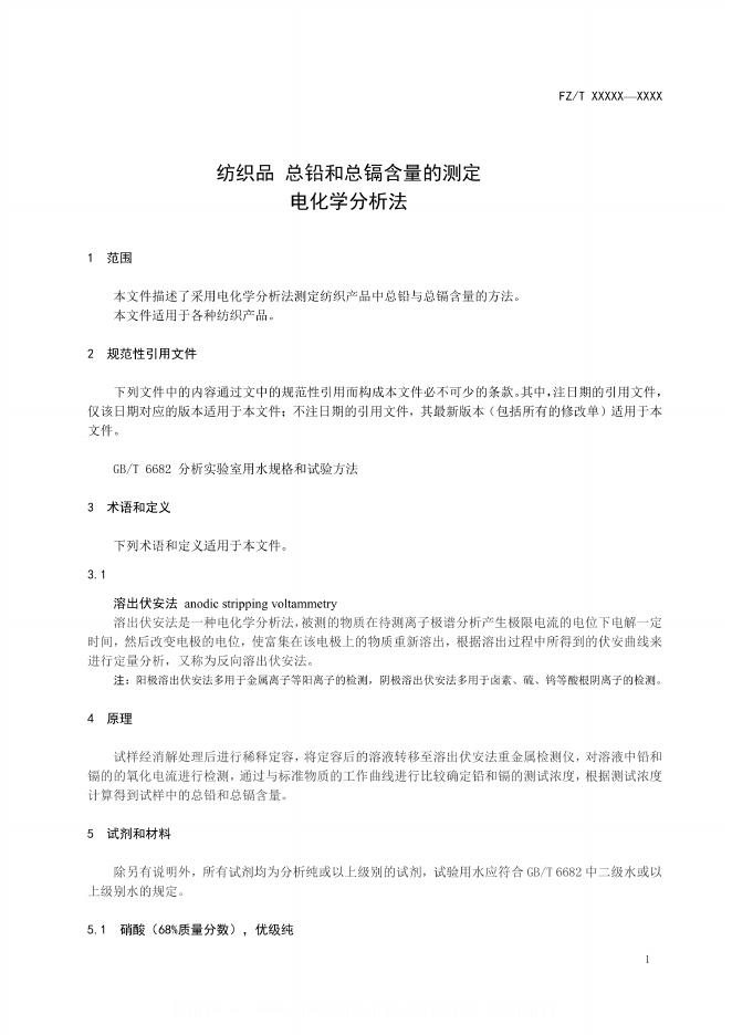 FZ/T 01179-2024 纺织品 总铅和总镉含量的测定 电化学分析法