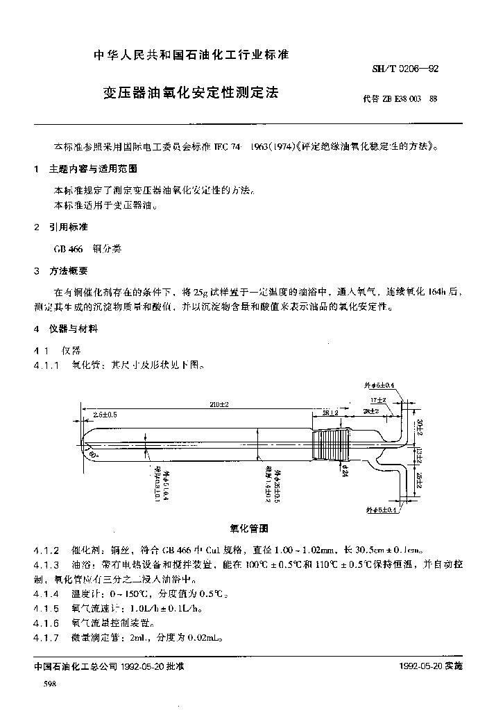 SH/T 0206-1992 变压器油氧化安定性测定法