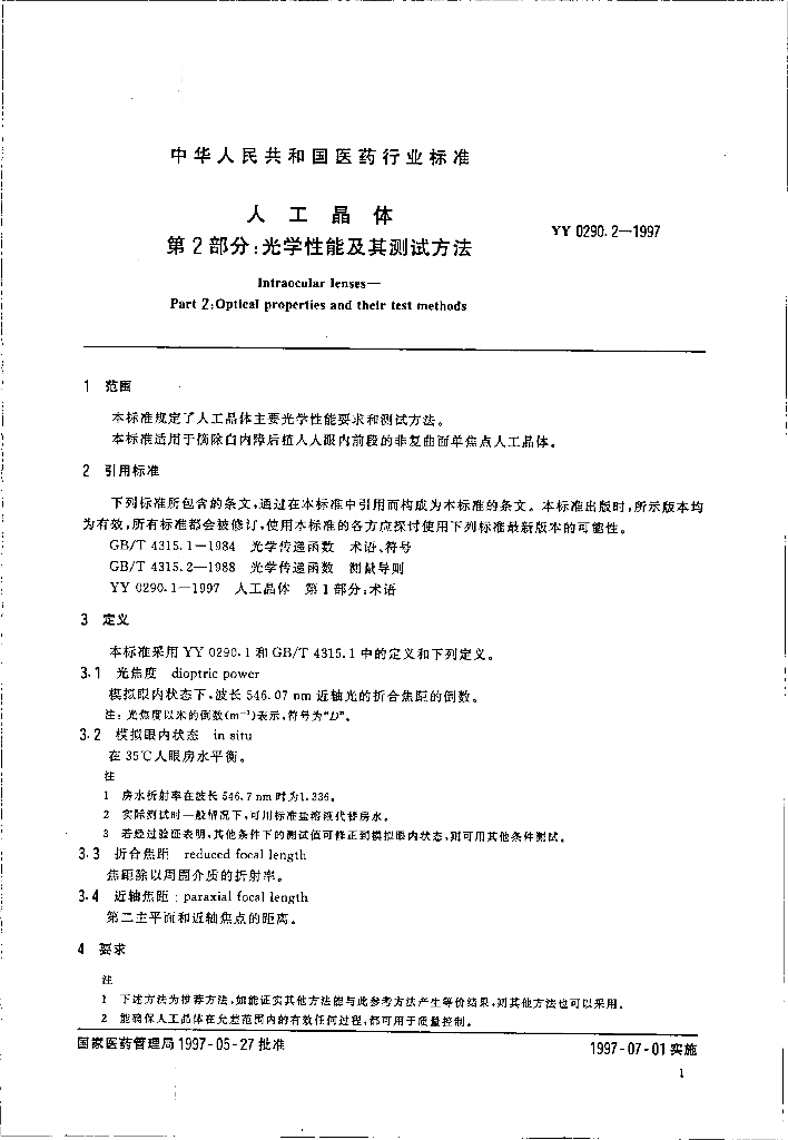 YY 0290.2-1997 人工晶体 第2部分-光学性能及其测试方法