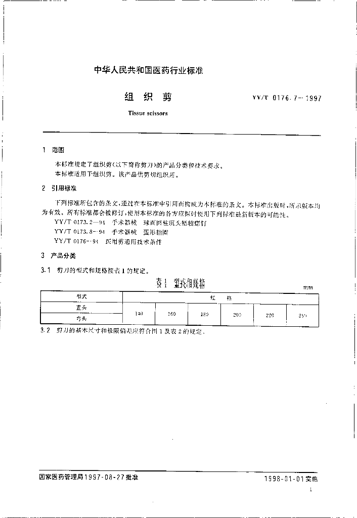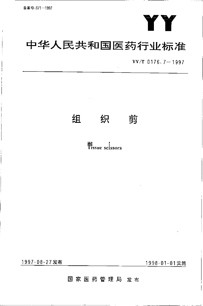 YY/T 0176.7-1997 组织剪