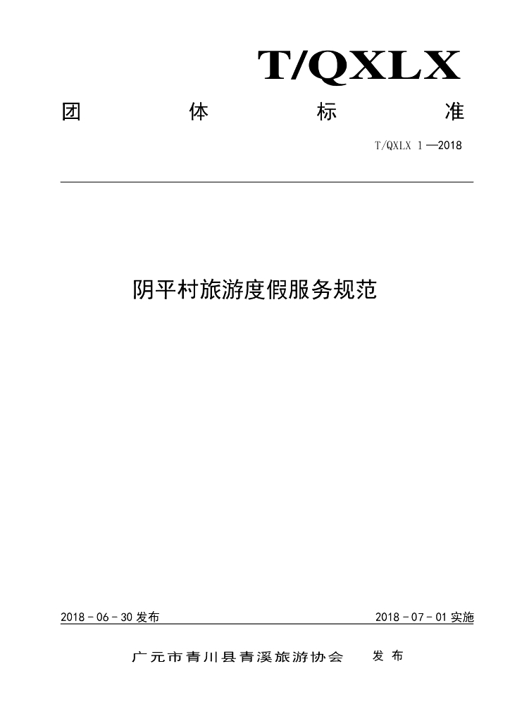T/QXLX 1-2018 阴平村旅游度假服务规范