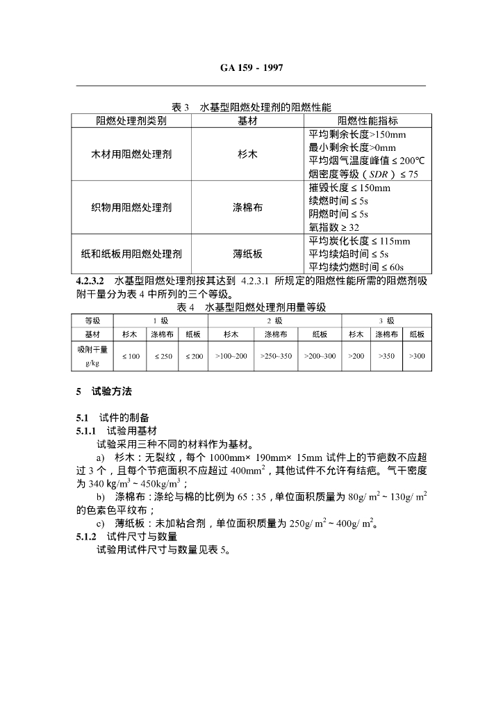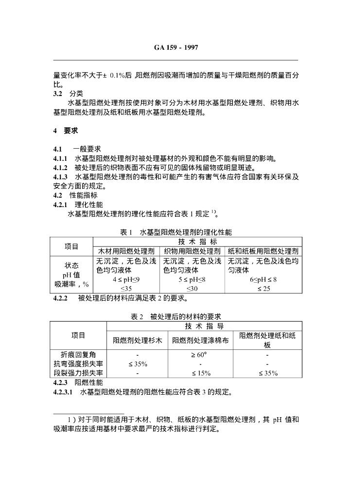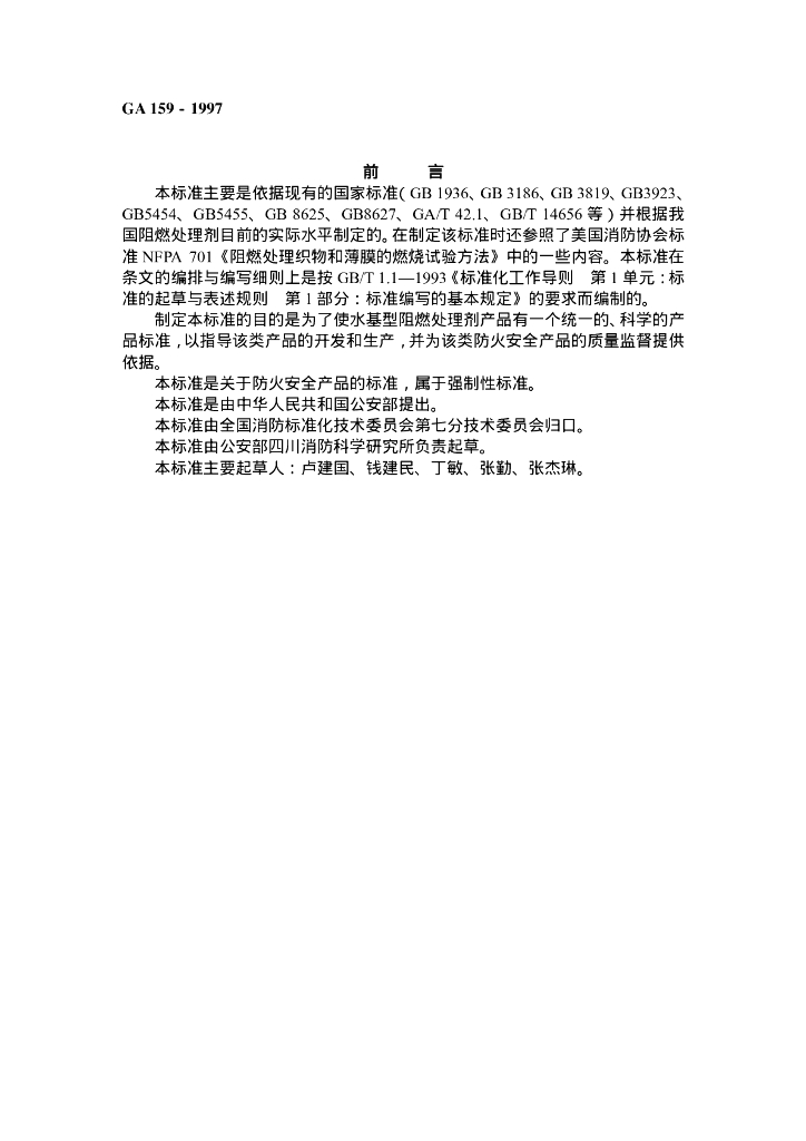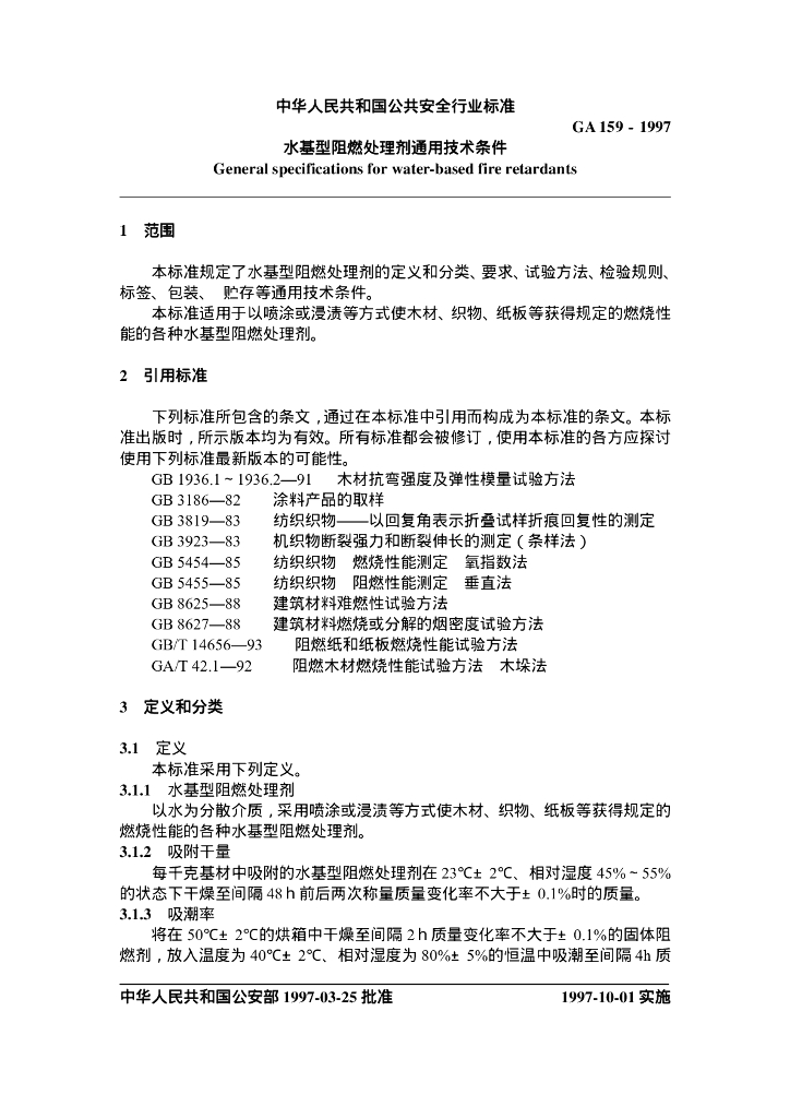 GA 159-1997 水基型阻燃处理剂通用技术条件