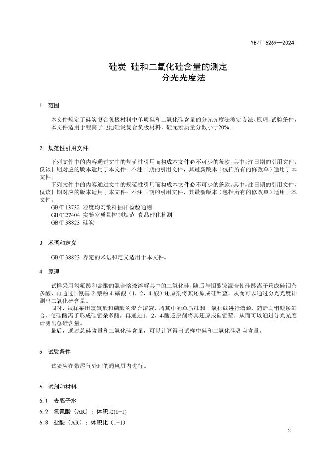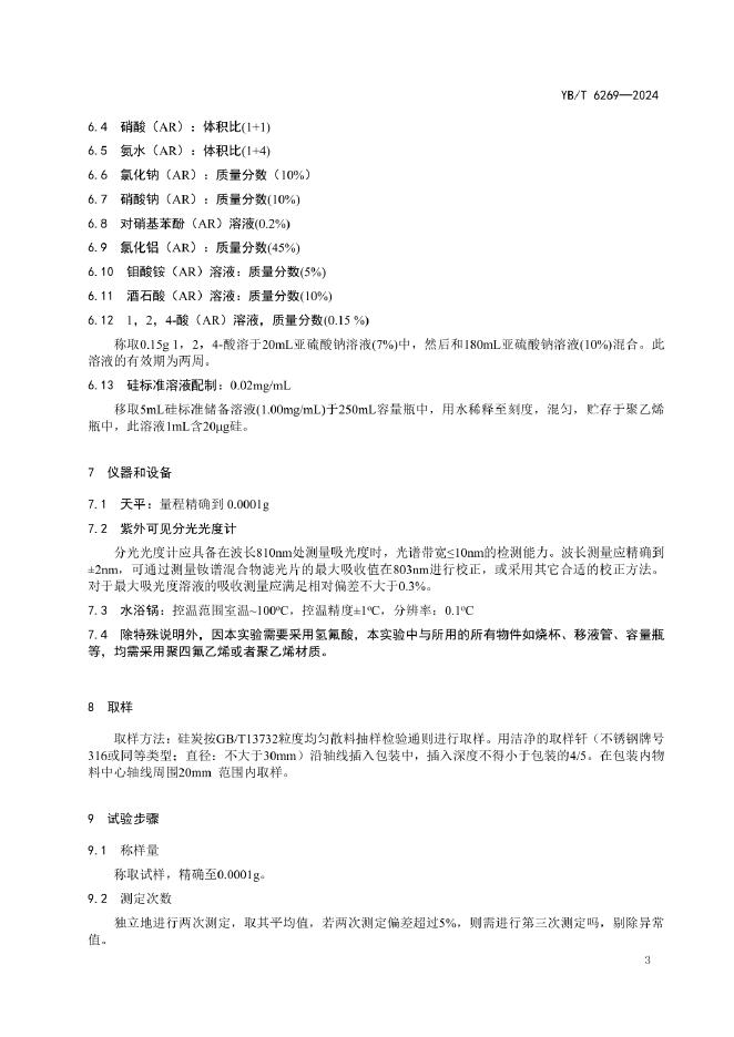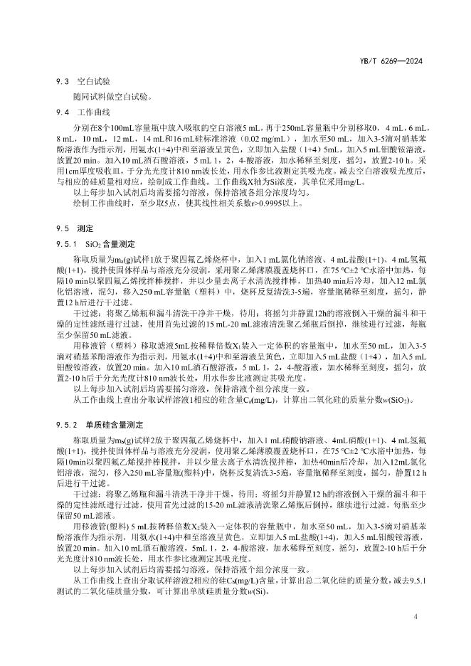 YB/T 6269-2024 硅炭 硅和二氧化硅含量的测定 分光光度法