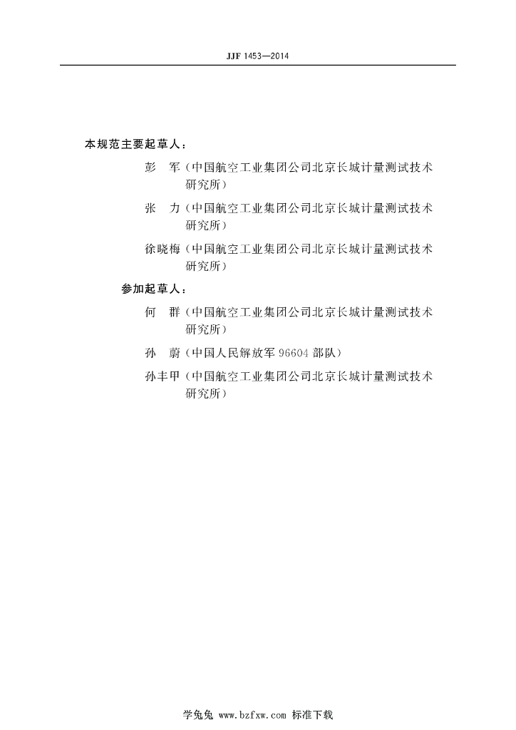 彭军(中国航空工业集团公司北京长城计量测试技术研究所)、张力(中国航空工业集团公司北京长城计量测试技术研究所)、徐晓梅(中国航空工业集团公司北京长城计量测试技术研究所)、何群(中国航空工业集团公司北京长城计量测试技术研究所)、孙蔚(中国人民解放军96604部队)、孙丰甲(中国航空工业集团公司北京长城计量测试技术研究所)