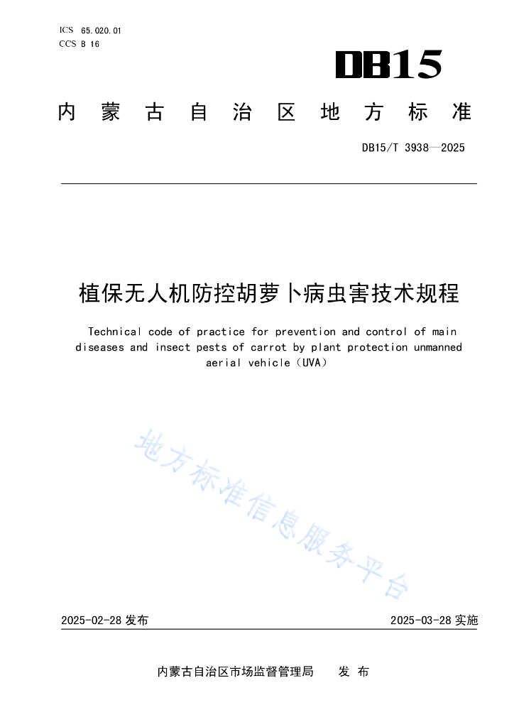DB15/T 3938-2025 植保无人机防控胡萝卜病虫害技术规程