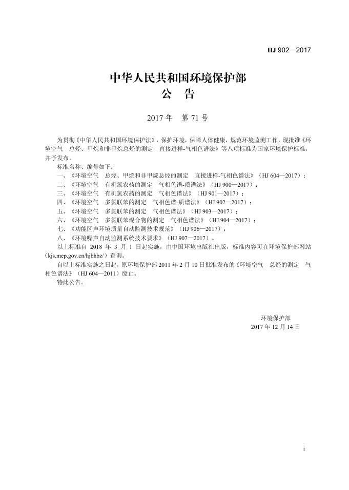 HJ 902-2017 环境空气 多氯联苯的测定 气相色谱-质谱法